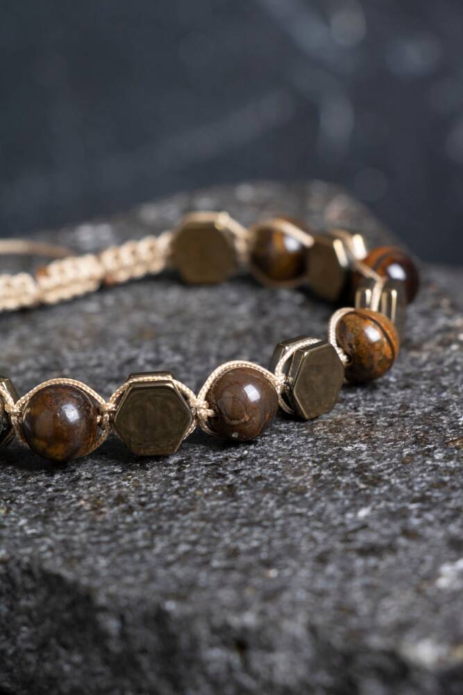Kaplan Gözü ve Hematit Doğal Taş Makrome Bileklik Güç, odaklanma ve sarsılmaz bir kararlılık. Sıcak kahverengi tonlarıyla cesareti simgeleyen Kaplan Gözü ve metalik gri ışıltısıyla topraklanmayı sağlayan Hematit, el emeği makrome işçiliğiyle bir araya geldi. Bu bileklik, hem modern ve karakteristik bir şıklık sunar hem de gün içindeki stresli anlarınızda size dayanıklılık aşılar. Bu İkilinin Güçlü Sinerjisi Kaplan Gözü (Cesaret ve Özgüven): 'Bağımsızlık Taşı' olarak bilinir. Korku ve endişeyi azaltarak, karar verme süreçlerini hızlandırır. Işıkta değişen ipeksi hareleriyle zihni keskinleştirir ve bolluk enerjisini çeker. Hematit (Topraklama ve Koruma): Zihni sakinleştirir ve enerjinizi stabilize eder. Negatif enerjiyi toprağa ileterek kendinizi daha güvenli ve odaklanmış hissetmenizi sağlar. Dikkat dağınıklığını önlemede oldukça etkilidir. Makrome Sanatı: İplerin birbirine kenetlendiği makrome örgüsü, taşların koruyucu enerjisini bileğinize konforla sabitler ve tamamen size özel bir uyum sunar. Tasarım ve Ürün Detayları Ayarlanabilir Asansör Kilit: Kaliteli makrome ipiyle hazırlanan sürgülü (asansör) sistemi sayesinde her bilek ölçüsüne tam uyum sağlar. Takıp çıkarması son derece kolaydır. Dayanıklı Yapı: Suya ve günlük kullanıma karşı dirençli özel takı ipleri kullanılmıştır. Spor yaparken, çalışırken veya günlük hayatın her anında size eşlik eder. A Kalite Doğal Taşlar: Kaplan Gözü'nün en belirgin hareli taşları ve Hematit'in kusursuz parlaklıktaki küreleri özenle seçilmiştir. Neden Bu Bilekliği Tercih Etmelisiniz? Zihinsel Performans: Özellikle odaklanma gerektiren işlerde veya karmaşık dönemlerde Hematit'in dikkat toplayıcı gücünden faydalanabilirsiniz. Duygusal Dayanıklılık: Kaplan Gözü, stresli zamanlarda içsel gücünüzü hatırlatır ve öz güveninizi tazeler. Asil Görünüm: Toprak tonları ve metalik grinin uyumu, her türlü kıyafetle doğal bir bütünlük sağlar.