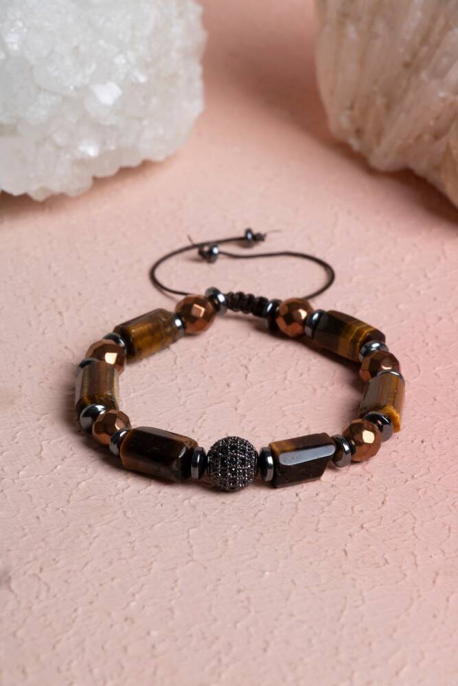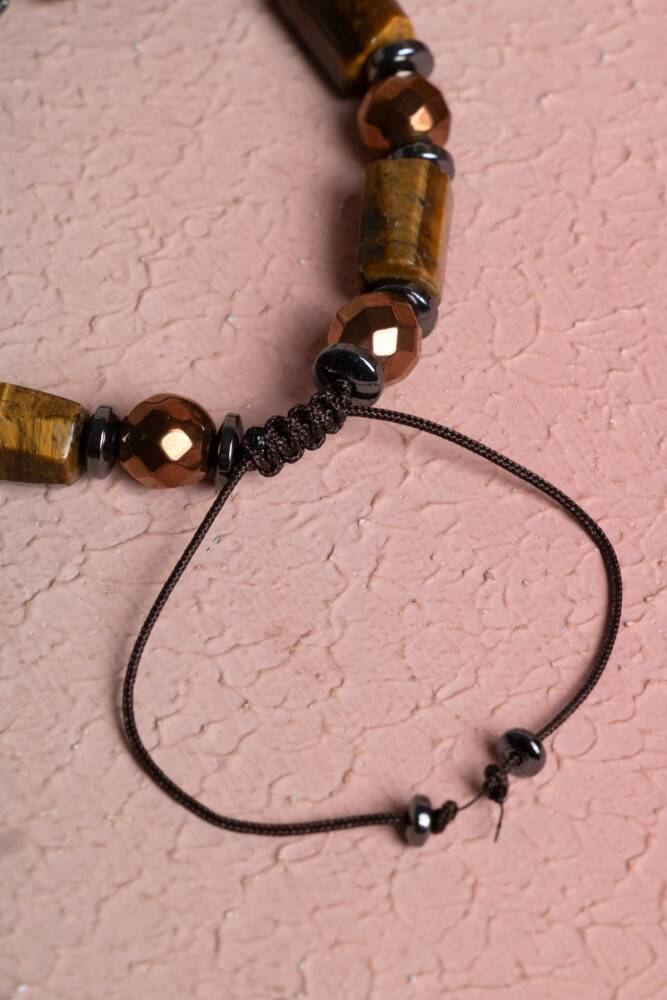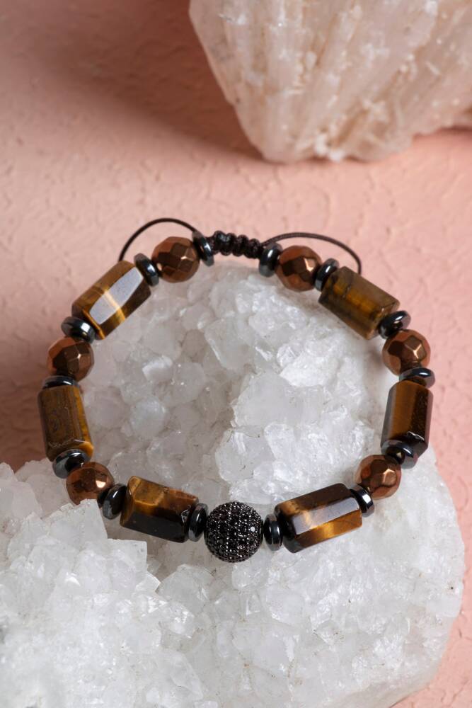 Kaplan Gözü ve Hematit Zirkon Aparatlı Doğal Taş Makrome Bileklik Gücün, dengenin ve zırh gibi sağlam bir duruşun simgesi. Cesaretin taşı Kaplan Gözü ile koruyuculuğuyla bilinen Hematit, bu tasarımda el emeği makrome işçiliği ve ışıltılı zirkon detaylarla buluşuyor. Ayarlanabilir asansörlü yapısı sayesinde her bileğe kusursuz uyum sağlayan bu model, modern şıklığı kadim taşların enerjisiyle birleştirir. Bu İkilinin Enerji Rehberi Kaplan Gözü (Cesaret ve Odaklanma): 'Bağımsızlık Taşı' olarak bilinir. Korkuları yatıştırır, öz güveni artırır ve zihinsel odaklanmayı keskinleştirir. Kişiye hedeflerine ulaşması için gereken iradeyi ve enerjiyi sağlar. Hematit (Topraklanma ve Koruma): Bedendeki statik elektriği ve stresi emer. Adeta bir enerji kalkanı görevi görerek negatif dış etkilere karşı koruma sağlar. Öz disiplini güçlendirir ve ayaklarınızın yere sağlam basmasına yardımcı olur. Zirkon Detaylar: Tasarıma eklenen zirkon taşlı aparatlar, bu güçlü ve maskülen/unisex taşlara pırlanta ışıltısı katarak bilekliği daha lüks bir mücevher seviyesine taşır. Tasarım ve Ürün Özellikleri A Kalite Taşlar: Kaplan Gözü’nün ipeksi kahverengi-altın hareleri ile Hematit’in metalik gri/siyah parlaklığı, güç ve otoriteyi temsil eden bir renk uyumu sunar. El İşçiliği Makrome: Dayanıklı, suya ve tere dayanıklı özel paraşüt ipiyle hazırlanan makrome örgüsü, bilekliğin formunu korumasını sağlar. Asansörlü (Ayarlanabilir) Kilit: Kilitli sistem sayesinde bileklik her bilek ölçüsüne göre kolayca daraltılıp genişletilebilir. Zirkon Aparatlar: Kararmaya dayanıklı kaplama üzerine yerleştirilmiş yüksek kaliteli zirkon taşlı ayraçlar kullanılmıştır. Neden Bu Bilekliği Tercih Etmelisiniz? Günlük Enerji Kalkanı: Yoğun iş temposunda veya stresli ortamlarda hem odaklanmak hem de enerjinizi korumak için mükemmel bir yardımcıdır. Şık ve Maskülen Dokunuş: Bu kombinasyon, özellikle saatlerin yanına çok yakışan, karakter sahibi ve güçlü bir duruş sergiler. Konforlu Tasarım: Misinalı modellere göre daha esnek olan makrome yapısı, spor ve aktif bir yaşam tarzı için idealdir.
