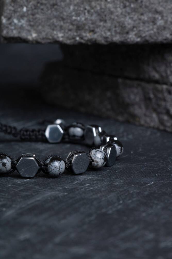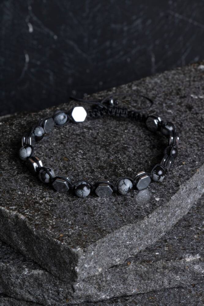 Karlı Obsidyen’in arındırıcı enerjisi ile Hematit’in dengeleyici gücü, erkeklere özel güçlü bir makrome bileklikte buluşuyor. %100 doğal ve sertifikalı taşlarla el işçiliğiyle hazırlanan bu tasarım, hem negatif enerjilerden korunmanıza yardımcı olur hem de stilinize modern bir dokunuş katar.