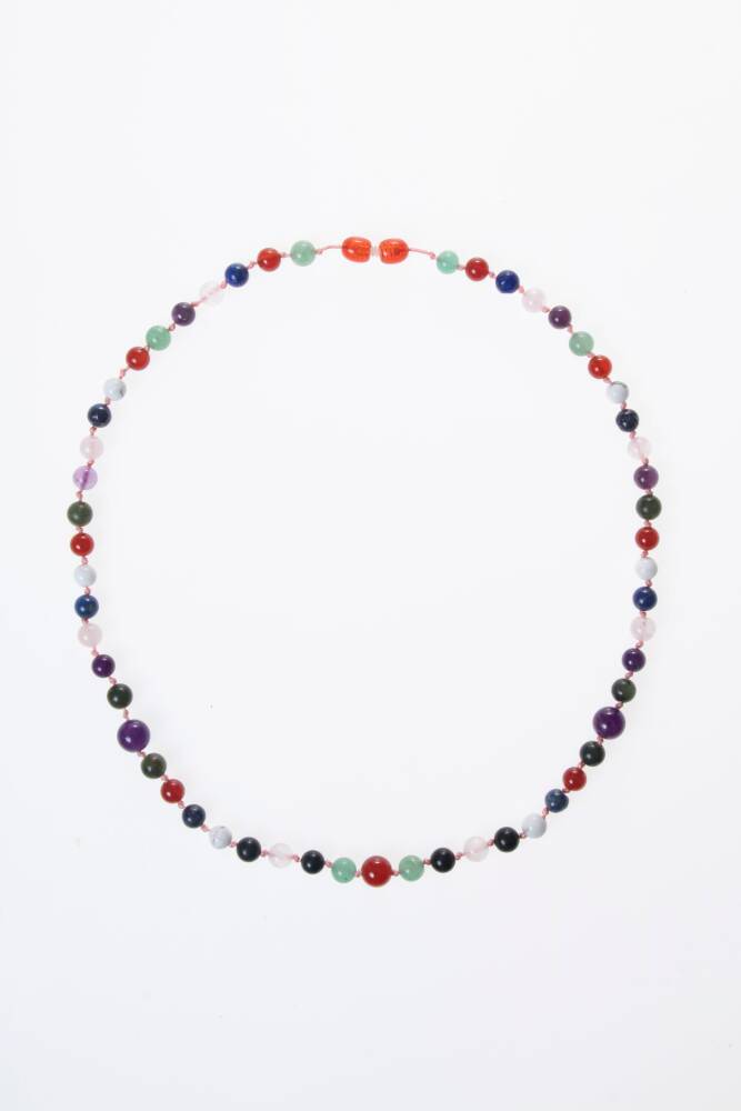 Bu özel kolye, sekiz farklı doğal taşın enerjisini tek tasarımda bir araya getirir: