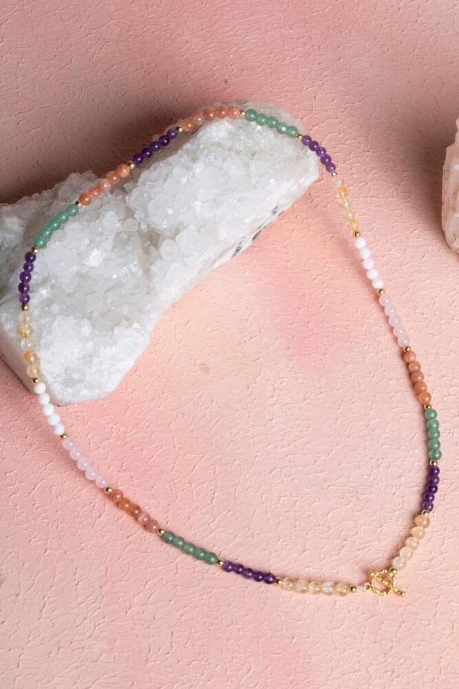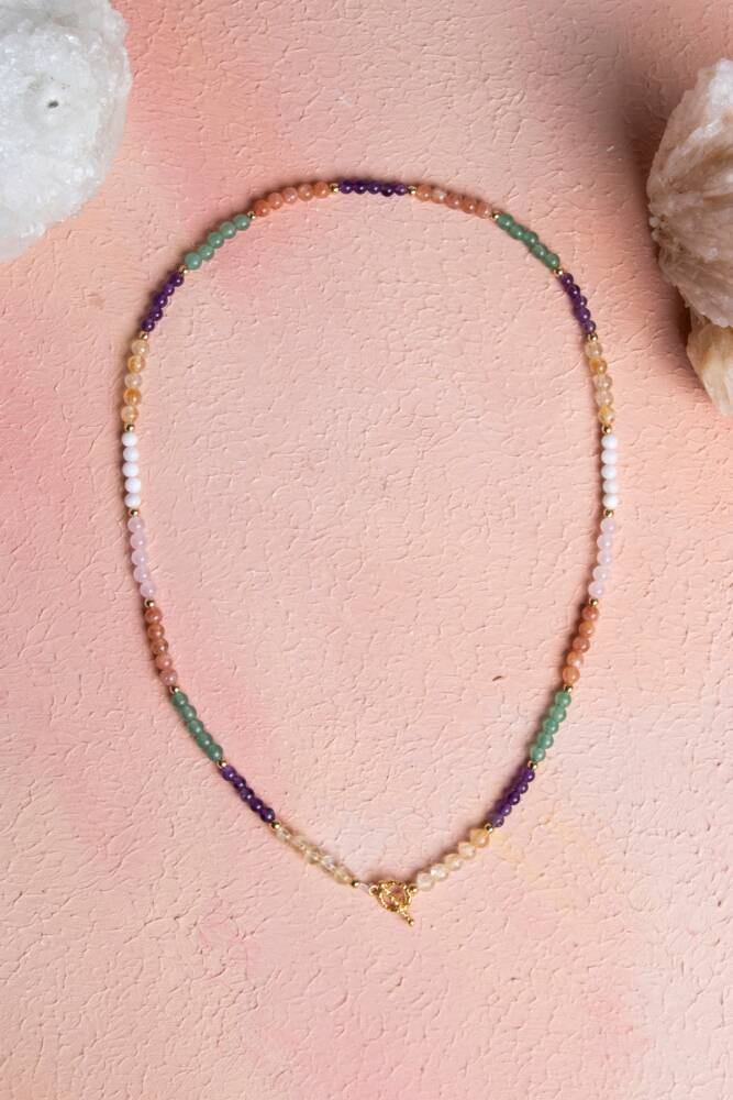 Sertifikalı Pembe Kuvars, Güneş Taşı, Aventurin, Ametist, Sitrin ve Akuamarin taşları.