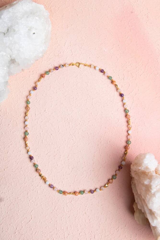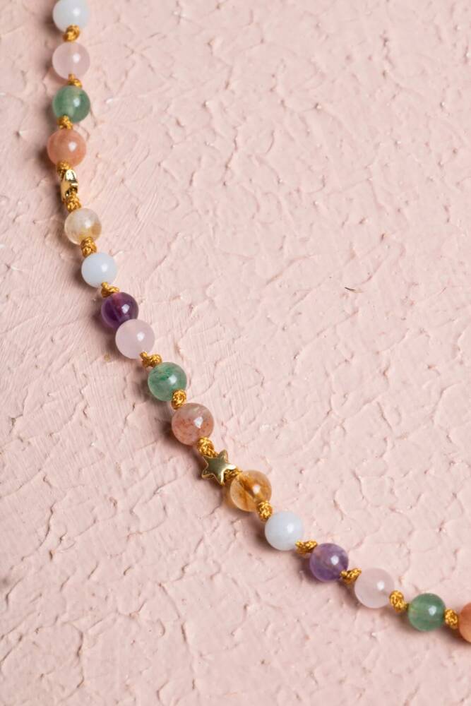 Tutku, cesaret ve liderlik... Koç burcunun dinamik, enerjik ve öncü ruhunu yansıtan bu özel gümüş yıldızlı kolye; Pembe Kuvars, Güneş Taşı, Aventurin, Ametist, Sitrin ve Akuamarin enerjisiyle tasarlandı. %100 doğal ve sertifikalı taşlarla el işçiliğiyle hazırlanan bu kolye, hem ruhsal destek sağlar hem de günlük stilinize şık bir dokunuş katar. Taşların Enerjisi: Pembe Kuvars: Duygusal dengeyi sağlar, sevgi ve şefkat enerjisini artırır. Güneş Taşı: Neşe, canlılık ve özgüven aşılar; liderlik özelliklerini destekler. Aventurin: Şans, bolluk ve pozitif enerji çeker; yeni başlangıçları destekler. Ametist: Zihni sakinleştirir, ruhsal koruma ve netlik sağlar. Sitrin: Başarı, bolluk ve pozitif enerji getirir; motivasyonu artırır. Akuamarin: Berrak iletişim ve zihinsel sakinlik sağlar. Öne Çıkan Özellikler: %100 doğal ve sertifikalı taşlar. Koç burcuna özel güçlü taş kombinasyonu. 925 ayar gümüş yıldız detayı ile zarif tasarım. El işçiliği, dayanıklı ve şık kullanım. Günlük kombinlere hem enerji hem estetik katkı. Bu kolye, sadece bir aksesuar değil; Koç burcunun cesur, enerjik ve öncü doğasını taşıyan özel bir parçadır.