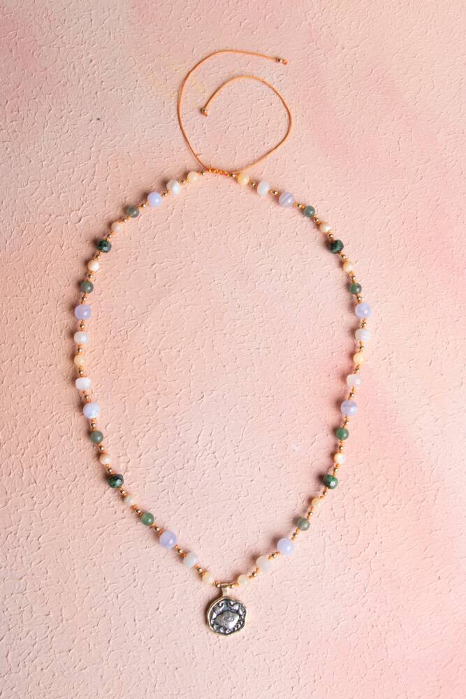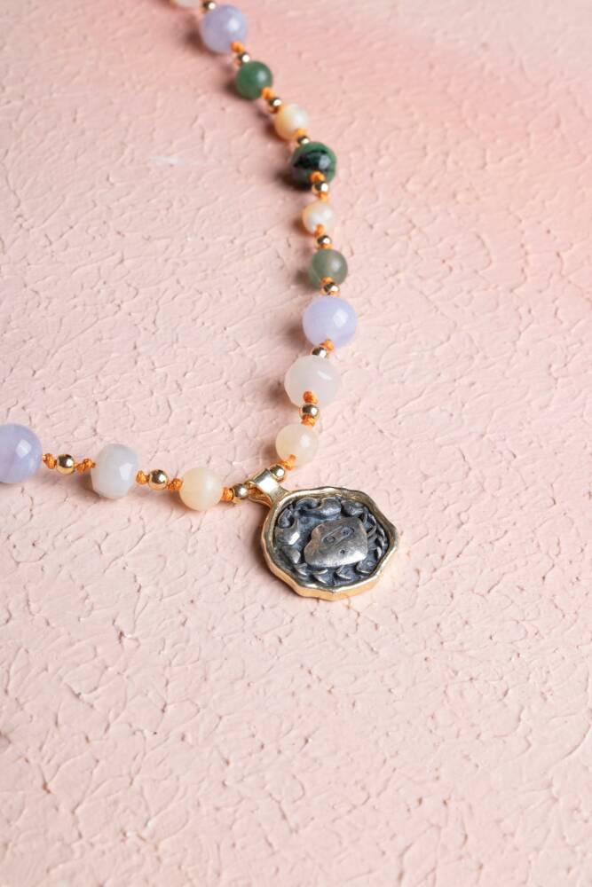Bu özel kadın bilekliği, Kova burcunun bağımsız, yaratıcı, vizyoner ve duygusal derinliğe sahip doğasını destekleyen doğal taşlarla tasarlandı: