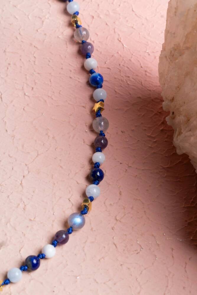 Özgünlük, entelektüellik ve vizyon... Kova burcunun özgür, yenilikçi ve hümanist ruhunu yansıtan bu özel gümüş yıldızlı kolye; Ay Taşı, Labradorit, Yeşim, Akuamarin, Ametist ve Kaplan Gözü enerjisiyle tasarlandı. %100 doğal ve sertifikalı taşlarla el işçiliğiyle hazırlanan bu kolye, hem ruhsal destek sağlar hem de günlük stilinize şık bir dokunuş katar. Taşların Enerjisi: Ay Taşı: Sezgileri ve duygusal farkındalığı güçlendirir. Labradorit: Ruhsal farkındalığı ve sezgileri artırır; vizyon ve yaratıcılığı destekler. Yeşim: Bilgelik, huzur ve uyum getirir; pozitif enerjiyi çeker. Akuamarin: İletişim, duygusal denge ve sakinlik sağlar. Ametist: Zihinsel netlik, sezgi ve ruhsal koruma sağlar. Kaplan Gözü: Özgüven, cesaret ve kararlılık kazandırır. Öne Çıkan Özellikler: %100 doğal ve sertifikalı taşlar. Kova burcuna özel güçlü taş kombinasyonu. 925 ayar gümüş yıldız detayı ile zarif tasarım. El işçiliği, dayanıklı ve şık kullanım. Günlük kombinlere hem enerji hem estetik katkı. Bu kolye, sadece bir aksesuar değil; Kova burcunun vizyonunu, özgünlüğünü ve entelektüel gücünü taşıyan özel bir parçadır.