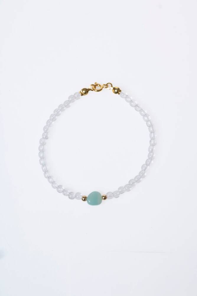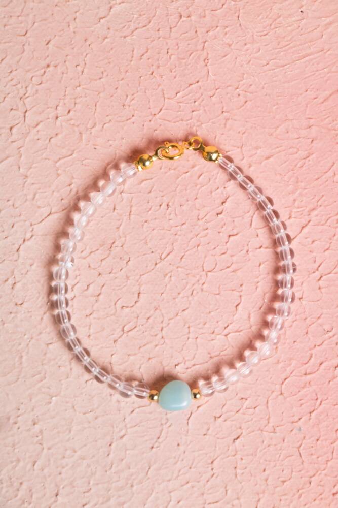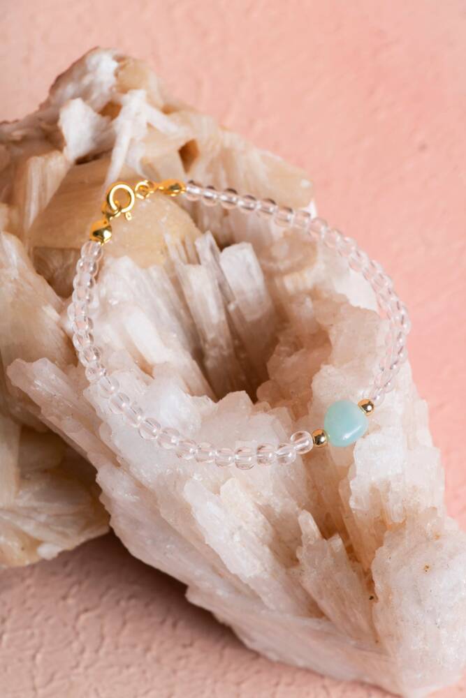 Arınma, huzur ve hakikat gücünü bileğinizde birleştirin. Kristal Kuvars'ın enerji yükseltici gücü ve Amazonit'in sakinleştirici dinginliği, şık ve güvenli bir Gümüş Kapama detayıyla tamamlanarak bu özel bileklikte buluşuyor. Bu bileklik, size zihinsel netlik, duygusal denge ve güçlü destek sağlayan değerli bir objedir.
