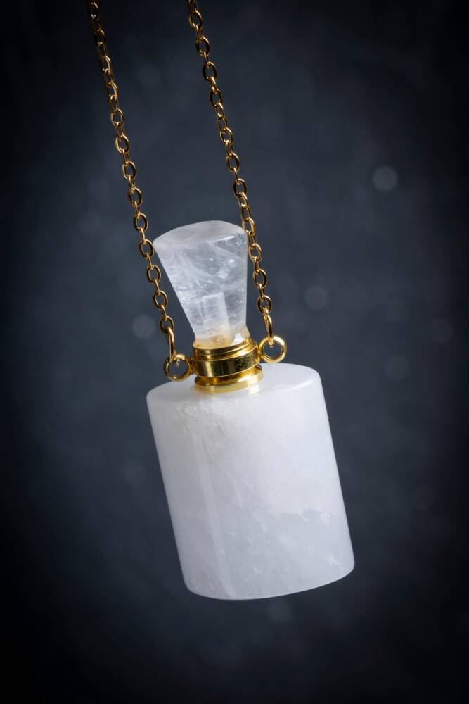 Bu özel şişe, orijinal ve kalitesi onaylanmış gerçek Kristal Kuvars taşı kullanılarak üretilmiştir. Favori esansiyel yağlarınızı her an yanınızda taşımanızı sağlarken, aynı zamanda Kristal Kuvars'ın doğal enerjilerinden sürekli olarak faydalanmanızı sağlar.