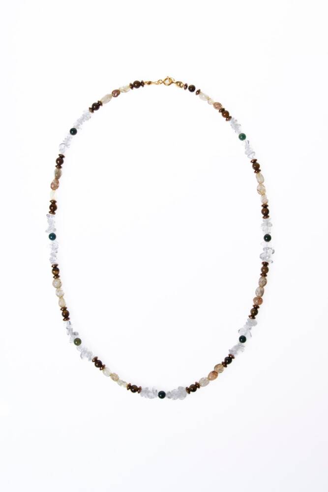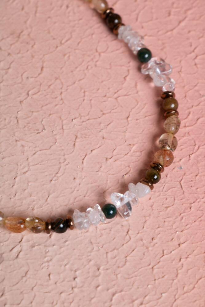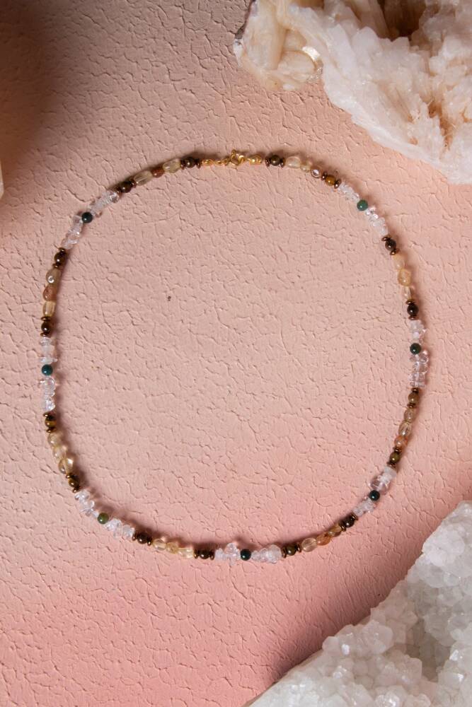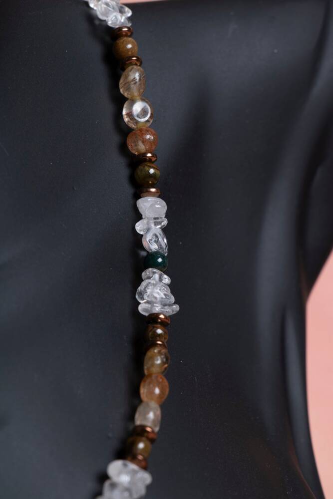 Kristal Kuvars, Rutilli Kuvars, Kaplan Gözü, Yeşil Akik Gümüş Kapama Doğal Taş Kolye Enerji yükseltme, zihinsel berraklık, koruma ve şans gücünü tek bir kolyede birleştirin. Kristal Kuvars'ın arındırıcı gücü, Rutilli Kuvars'ın aydınlatıcı etkisi, Kaplan Gözü'nün cesareti ve Yeşil Akik'in dengelemesi, şık bir Gümüş Kapama detayıyla bu özel kolyede buluşuyor. Bu kolye, size bütünsel bir denge, odaklanma ve güçlü bir destek sağlayan dinamik bir enerji kaynağıdır. Dört Güçlü Taşın Mistik Sinerjisi Kristal Kuvars (Enerji Yükseltme): 'Usta Şifacı' olarak bilinir. Enerjiyi büyütür, arındırır ve diğer tüm taşların etkisini maksimize eder. Zihinsel netliği artırır. Rutilli Kuvars (Aydınlanma ve Hızlandırma): İçindeki rutil iplikçikleri sayesinde enerjiyi yükseltir, ruhsal gelişimi ve yaratıcılığı hızlandırır. Kaplan Gözü (Cesaret ve Odaklanma): Özgüveni, kararlılığı ve zihinsel berraklığı artırır. Negatif enerjilere karşı koruma sağlar. Yeşil Akik (Denge ve Huzur): Kalp çakrasını destekler, duygusal denge ve huzur sağlar. Genellikle iyi şans ve refah getirdiğine inanılır. Gümüş Kapama Güvencesi ve Şıklığı Gümüş Kapama: Yüksek kaliteli Gümüş Kapama Aparatı, kolyeye güvenli ve sağlam bir kilit sistemi sağlarken, aynı zamanda sofistike ve modern bir görünüm katar. Doğal Tasarım: Taşların berrak ışıltısı, altın iplikçikleri ve canlı renk tonları, estetik ve enerjik bir uyum yakalar.