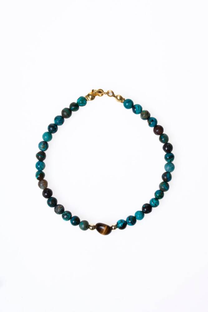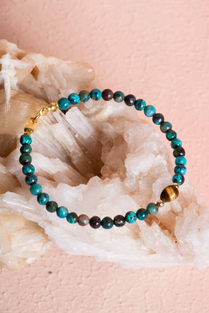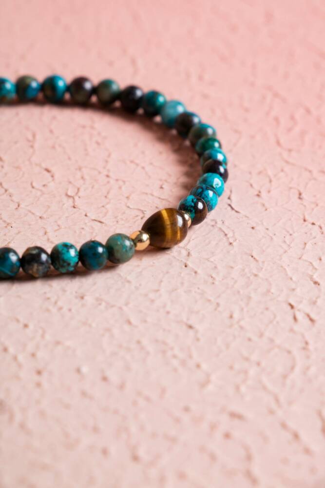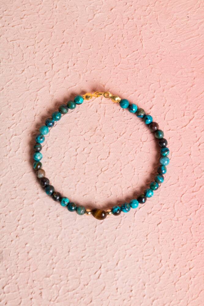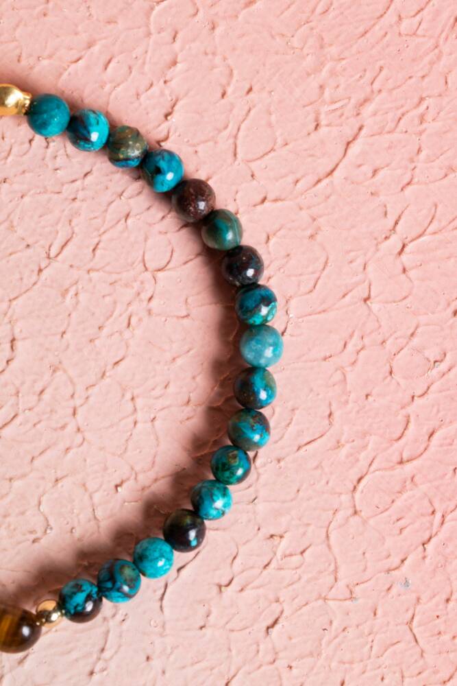 Huzurlu iletişim, güçlü koruma ve özgüveni bileğinizde birleştirin. Krizokol'ün yatıştırıcı enerjisi ve Kaplan Gözü'nün cesareti, şık ve güvenli bir Gümüş Kapama detayıyla tamamlanarak bu özel bileklikte buluşuyor. Bu bileklik, size duygusal denge, odaklanma ve güçlü bir destek sağlayan değerli bir objedir.