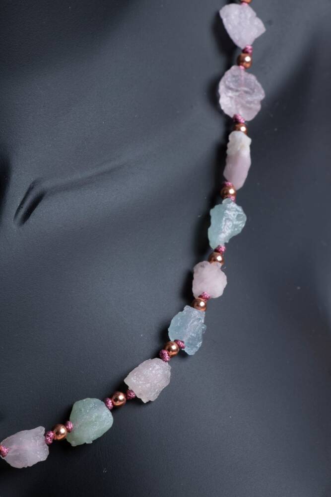 Doğal Uyum: Morganit'in doğal formu ve renk tonları, boynunuzda hem mistik hem de estetik bir ifade yaratır.