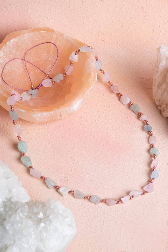 Morganit Doğal Taş Makrome Kolye İlahi sevginin, şefkatin ve duygusal şifanın taşı Morganit'in nazik enerjisini kalbinize yakın taşıyın. Nadir bulunan ve değerli Morganit doğal taşının narin pembe ışıltısı, dayanıklı Makrome Örgü ile birleşerek bu özel kolyeyi oluşturuyor. Bu kolye, size duygusal denge, huzur ve koşulsuz sevgi sağlayan güçlü bir enerji kaynağıdır. Morganit Taşının Büyüleyici Faydaları ve Zarafeti İlahi ve Koşulsuz Sevgi: Morganit, kalp çakrasıyla rezonansa girer. Öz sevgiyi, affetmeyi ve koşulsuz sevginin kabulünü teşvik eder. Duygusal Şifa ve Huzur: Duygusal stres, kaygı ve travmaların etkilerini hafifletmeye yardımcı olur. Kalbe huzur ve dinginlik getirir. Nazik Enerji: Yumuşak, narin pembe tonları sayesinde kadınsı (dişil) enerjiyi ve şefkati yükseltir. Zarif Duruş: Morganit'in berrak ve pastel pembe rengi, Makrome örgünün doğal dokusuyla birleşerek boynunuzda hem mistik hem de son derece zarif bir ifade yaratır. Makrome Modelin Estetik ve Pratikliği Dayanıklı Makrome Tasarım: Sağlam ve ayarlanabilir Makrome örgü modeli, kolyenin uzunluğunu kişiselleştirme imkanı sunar ve günlük kullanıma son derece dayanıklıdır. Doğal Uyum: Morganit'in doğal formu ve renk tonları, boynunuzda hem mistik hem de estetik bir ifade yaratır.
