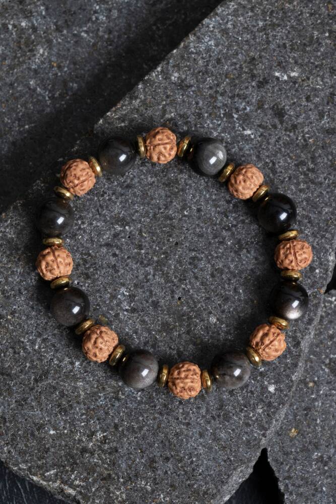 Gümüş detaylarla zenginleştirilen bu özel bileklik, enerjisel anlamda koruma ve denge sunarken, doğal dokusuyla stilinize otantik ve güçlü bir hava katar.