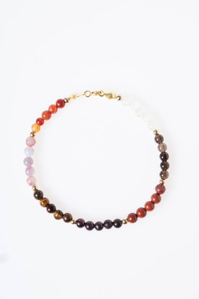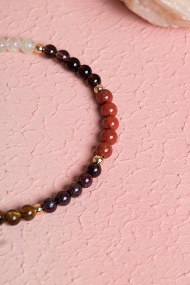 Bu özel kadın bilekliği, Oğlak burcunun çalışkan, hedef odaklı, güven veren ve sabırlı doğasına hitap eden doğal taşlarla tasarlandı: