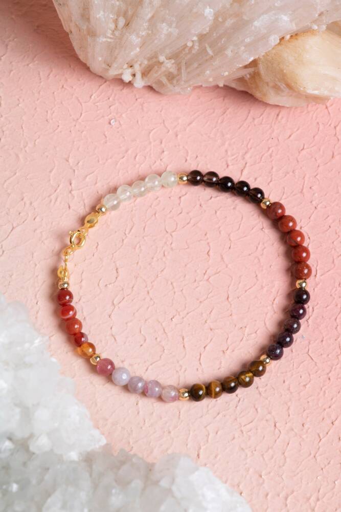 %100 doğal ve sertifikalı taşlarla hazırlanmış bu bileklik, kadınlara özel zarif tasarımıyla hem ruhsal destek sunar hem de günlük stilinize şıklık katar.