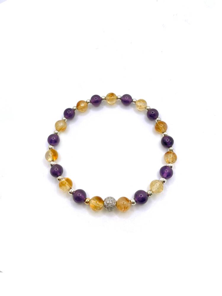 Sertifikalı Orijinal Hakiki 6mm Ametist - Sitrin - Gri Hematit - Zirkon Aparatlı Misinalı Bileklik