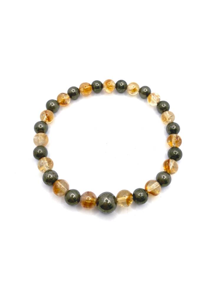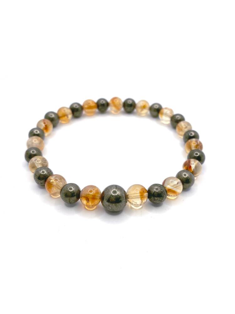 Sertifikalı Orijinal Hakiki 6mm Sitrin - Pirit Doğal Taş Misinalı Bileklik