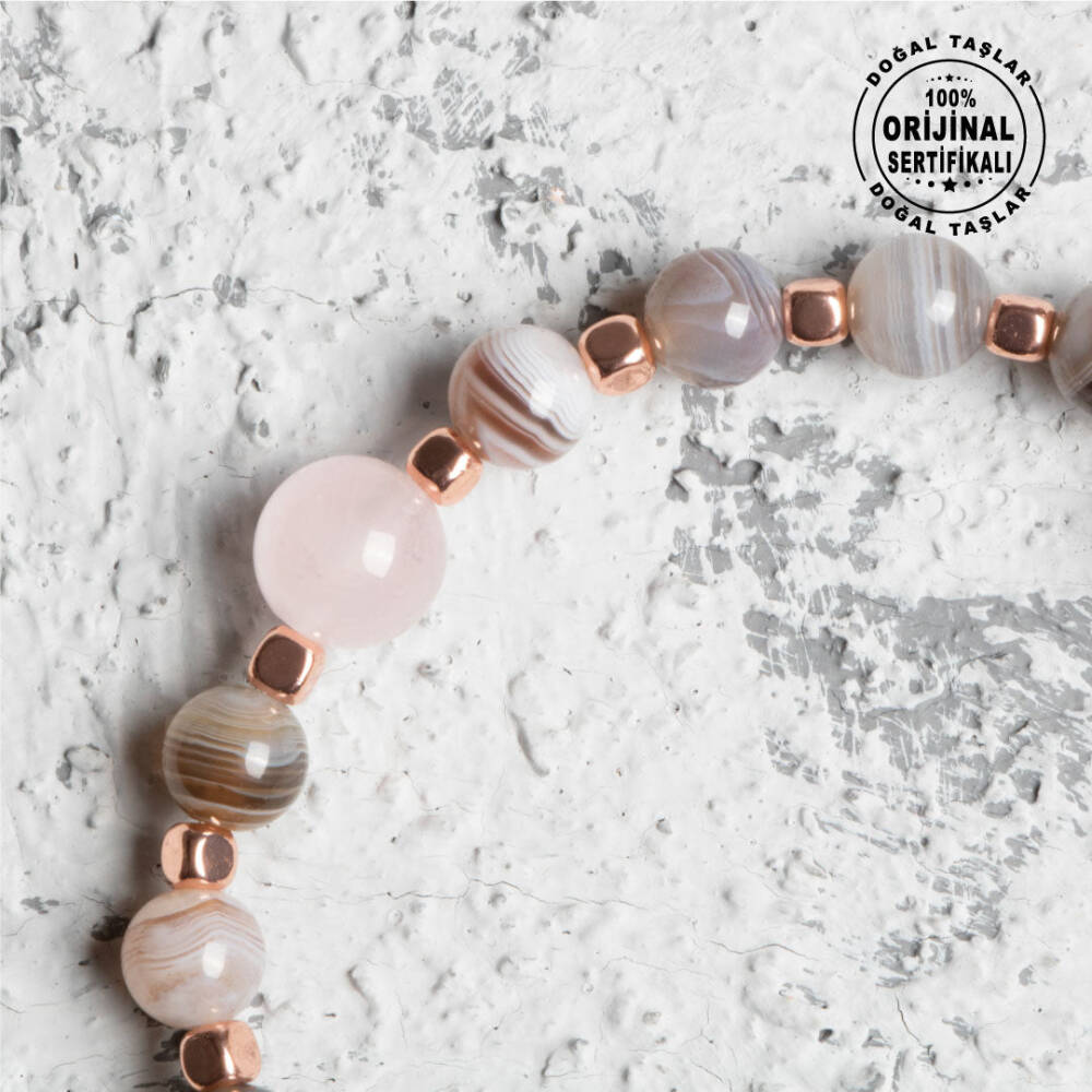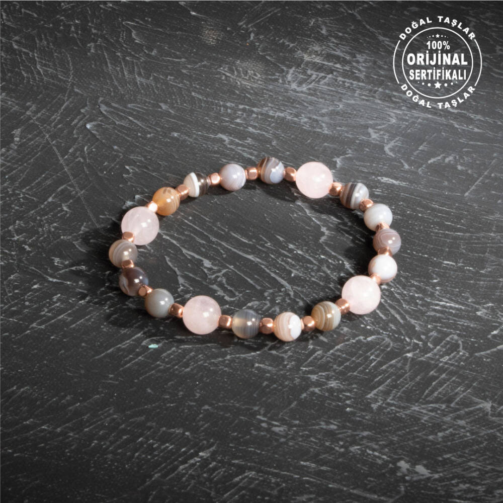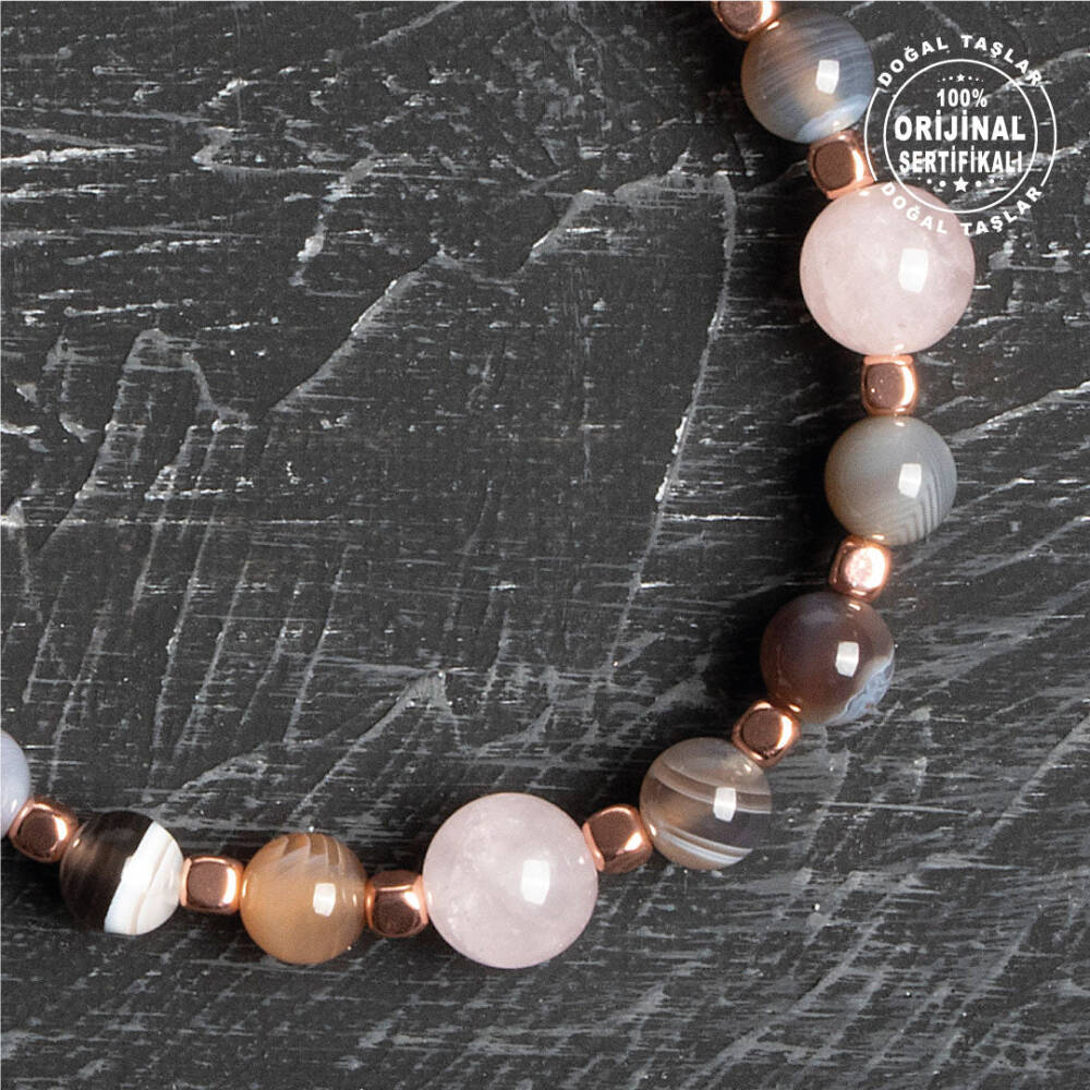 Hematit: Hematit taşı, topraklama ve dengeleme özellikleriyle negatif enerjiyi uzaklaştırır. Zihinsel netliği artırır ve odaklanmaya yardımcı olur. Özel kesimi sayesinde bilekliğe estetik bir görünüm katar.