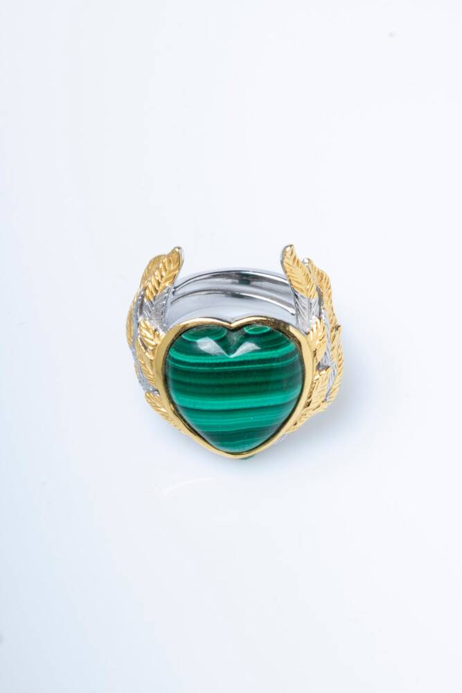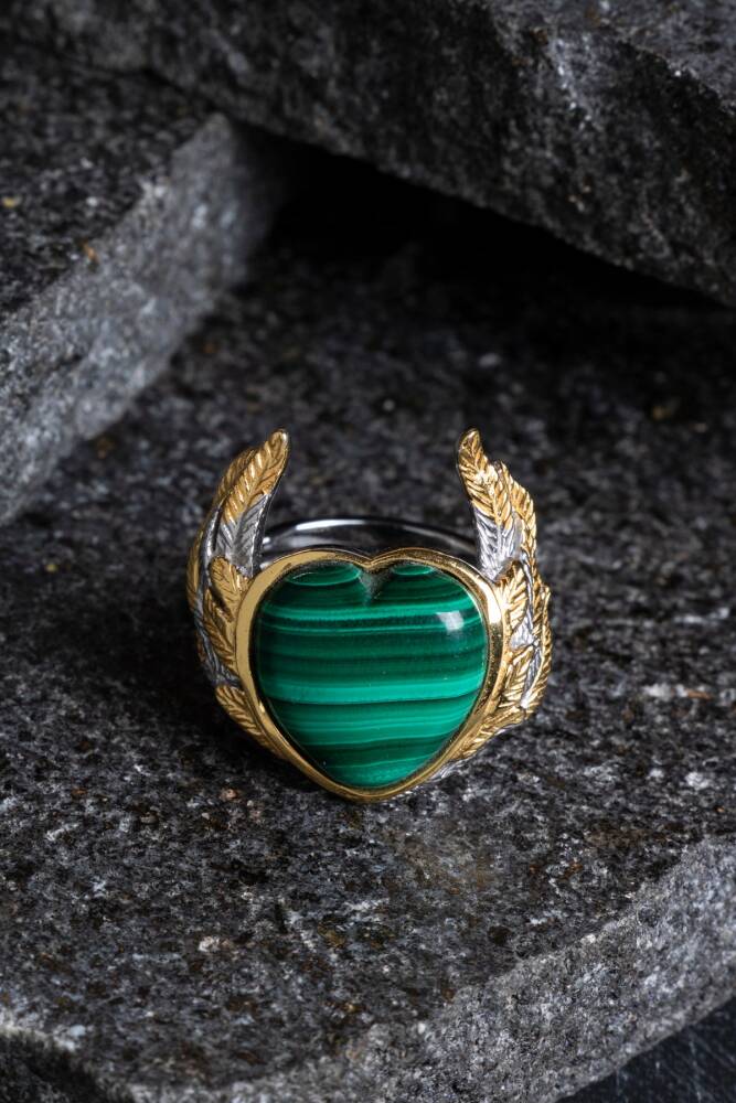 Canlı Desenler ve Zarafet: Malahit'in kendine has canlı yeşil katmanlı desenleri, yüzüğe sanatsal ve hipnotize edici bir güzellik katar.