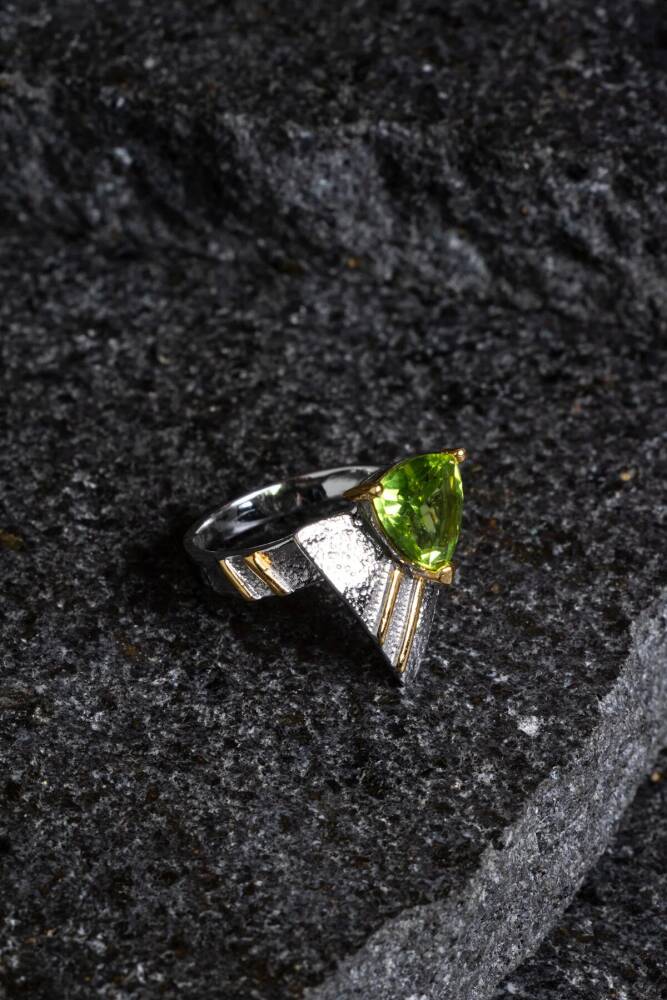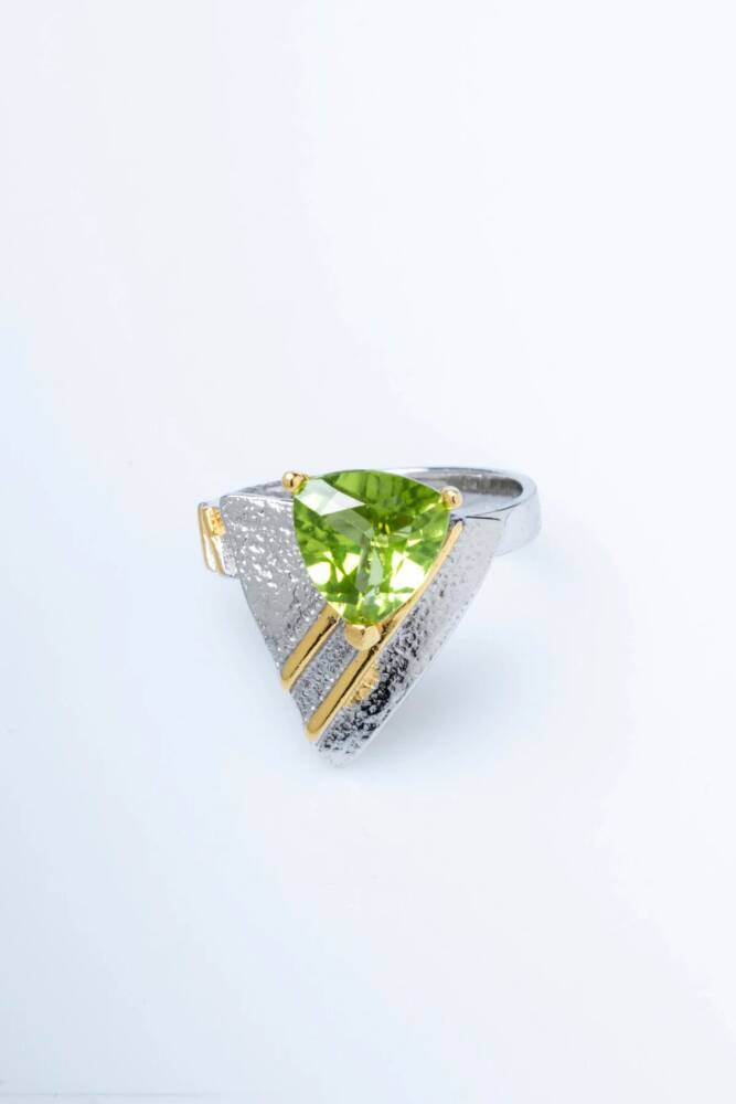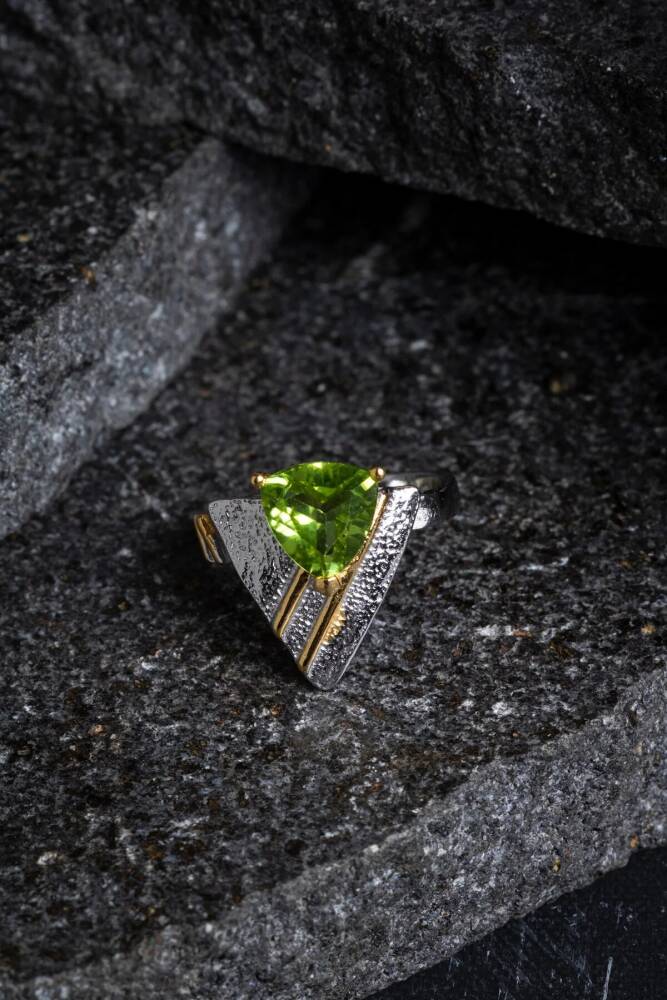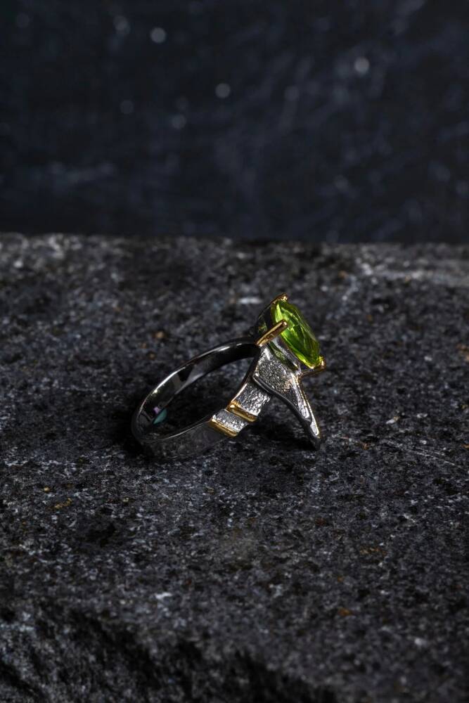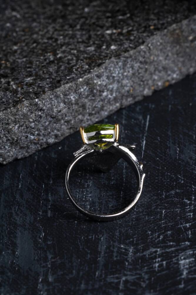 Sertifikalı Özel Tasarım İridyumlu Zebercet Gümüş Yüzük (Kadın) Bolluğun, neşenin ve güneşin pozitif enerjisini taşıyan Zebercet (Peridot) doğal taşının canlı yeşil ışıltısıyla tanışın. 925 Ayar Gümüş üzerine İridyum ile zenginleştirilmiş özel tasarımıyla bu yüzük, hem çarpıcı bir estetiğe hem de pozitif enerji ve koruma sağlayan değerli bir objedir. Koleksiyonluk 1 adet üretilmiştir. Zebercet, Gümüş ve İridyumun Mükemmel Uyumu Neşe ve Bolluk Enerjisi: Zebercet, neşeyi, pozitifliği ve bolluk enerjisini kendine çekmesiyle bilinir. Hayata karşı iyimserliği ve iyi şansı destekler. Negatif Enerji Kalkanı: Çevredeki olumsuz enerjileri nötralize ederek güçlü bir koruma kalkanı oluşturur. Zihinsel yorgunluğu ve stresi hafifletmeye yardımcı olur. Gümüşün Asaleti ve İridyumun Koruyuculuğu: Yüksek kaliteli 925 Ayar Gümüş üzerine uygulanan İridyum kaplama veya alaşım, yüzüğün kararmaya ve çizilmeye karşı direncini artırarak parlaklığını uzun yıllar korumasını sağlar. Özel Tasarım: Zebercet'in canlı yeşil tonlarını modern mühendislikle birleştiren bu benzersiz tasarım, parmağınızda tazelik ve pozitif bir ifade yaratır. Bu yüzük, orijinalliği ve kalitesi onaylanmış Sertifikalı Zebercet taşı kullanılarak üretilmiştir. Taşın zümrüt yeşili parlaklığı, İridyumlu Gümüş detaylarla birleşerek göz alıcı ve zarif bir estetik sunar.
