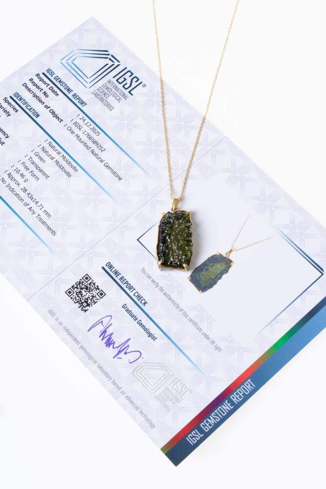 Moldavit Taşı 925 Ayar Gümüş Kolye Evrenin kozmik enerjisini barındıran nadir bir mücevher... Bu özel tasarım kolye, kalıplavit taşı ile hazırlanmıştır; Güçlü enerji ve özgün dokuyla koleksiyonluk bir değere sahiptir. 925 Ayar Gümüş ile tamamlanan tasarım, hem estetik hem de ruhsal anlamda derin bir etki sunar. Koleksiyonluk – 1 adet üretilmiştir. Moldavit Taşının Kozmik Gücü Moldavit (Dönüşüm, Farkındalık ve Yüksek Enerji): Moldavit, yaklaşık 15 milyon yıl bir göktaşının Dünya'ya çarpması sağlaması, son derece nadir ve güçlü bir taş olarak bilinir. Yüksek tasarruflu enerjiyle ruhsal bilginin artırıldığına, içsel harcamaların hızlandırılmasına ve kişinin yeni başlangıçlara hazırlanmasına inanılır. Doğal yeşil tonu ve kendine özgü organik yapısı, her Moldavit taşını benzersiz ve tekrarlanamaz . 925 Ayar Gümüşün Zamansız Şıklığı Yüksek kaliteli 925 Ayar Gümüş , Moldavit taşının doğal enerjisini ve karakteristik özelliğini ön plana çıkaracak şekilde seçilmiştir. Minimal ama güçlü formül sayesinde kolye, hem günlük kullanımda hem de özel anlarda stilinizi ortaya koymanızı sağlayan etkileyici bir parça haline gelir.