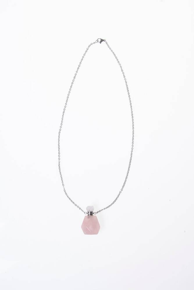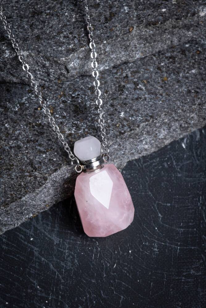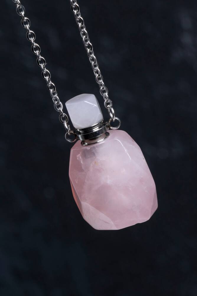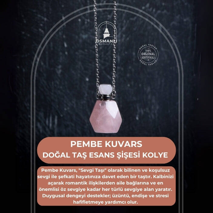 Sertifikalı Pembe Kuvars Doğal Taş Esans Şişesi Kolye