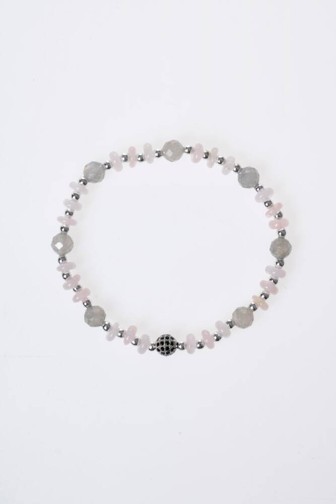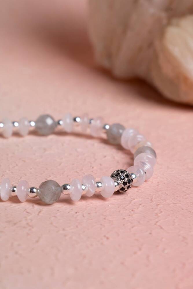 Pembe Kuvars ve Labradorit Zirkon Aparatlı Doğal Taş Bileklik (Misinalı) Sevginin yumuşak enerjisi ve sezgilerin gizemli ışığı bir arada. Kalbin taşı Pembe Kuvars ile ışık oyunlarıyla büyüleyen Labradorit, bu özel tasarımda zirkon taşlı ışıltılı aparatlarla buluşuyor. Esnek misinalı yapısı sayesinde kullanım konforu sunan bu bileklik, hem ruhsal alanınızı korur hem de bileğinizde pırlanta ışıltısında bir mücevher etkisi yaratır. Bu İkilinin Enerji Rehberi Pembe Kuvars (Koşulsuz Sevgi): Kalp çakrasını aktive ederek öz şefkati ve ilişkilerdeki uyumu artırır. Huzur veren enerjisiyle duygusal gerginliği azaltır ve içsel barışı destekler. Labradorit (Sezgi ve Koruma): 'Sihirbazın Taşı' olarak bilinir. Aura alanını temizler ve negatif enerjilere karşı bir kalkan oluşturur. Yüzeyindeki yanar-döner (labradoresans) yansımalarla sezgileri güçlendirir ve yaratıcılığı tetikler. Zirkon Detaylar: Tasarıma eklenen zirkon taşlı aparatlar, doğal taşların enerjisini pırlanta parlaklığıyla taçlandırarak bilekliğe lüks ve modern bir hava katar. Tasarım ve Teknik Özellikler A Kalite Taşlar: Pembe Kuvars’ın pastel pembe tonları ile Labradorit’in metalik gri-mavi parıltıları arasında estetik bir kontrast vardır. Yüksek Mukavemetli Misina: Kopmaya dayanıklı, uzun ömürlü profesyonel esnek misina kullanılmıştır. Takıp çıkarması son derece pratiktir. Zirkon Ayraçlar: Kararmaya karşı dayanıklı özel kaplama üzerine yerleştirilmiş, yüksek kaliteli zirkon taşlı aparatlar kullanılmıştır. Hafif ve Konforlu: Gün boyu rahatsızlık vermeden taşınabilecek hafifliktedir ve her bilek ölçüsüne uyum sağlar. Neden Bu Bilekliği Tercih Etmelisiniz? Duygusal Kalkan: Pembe Kuvars kalbinizi ferahlatırken, Labradorit sizi dış dünyanın yorucu enerjilerinden korur. Işıltılı Bir Stil: Zirkon aparatlar sayesinde bu bileklik, hem günlük denim kombinlerinize hem de şık akşam elbiselerinize kusursuzca eşlik eder. Anlamlı Bir Seçim: Kendinizi sevmek ve sezgilerinize güvenmek yolunda size eşlik edecek güçlü bir hatırlatıcıdır.