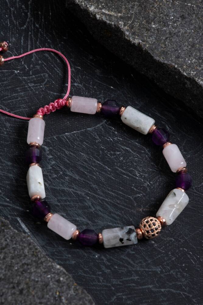 Rose gold detaylarla zarif bir dokunuş kazanan bu bileklik, hem enerjisiyle hem de tasarımıyla günlük stilinize zarafet katar.