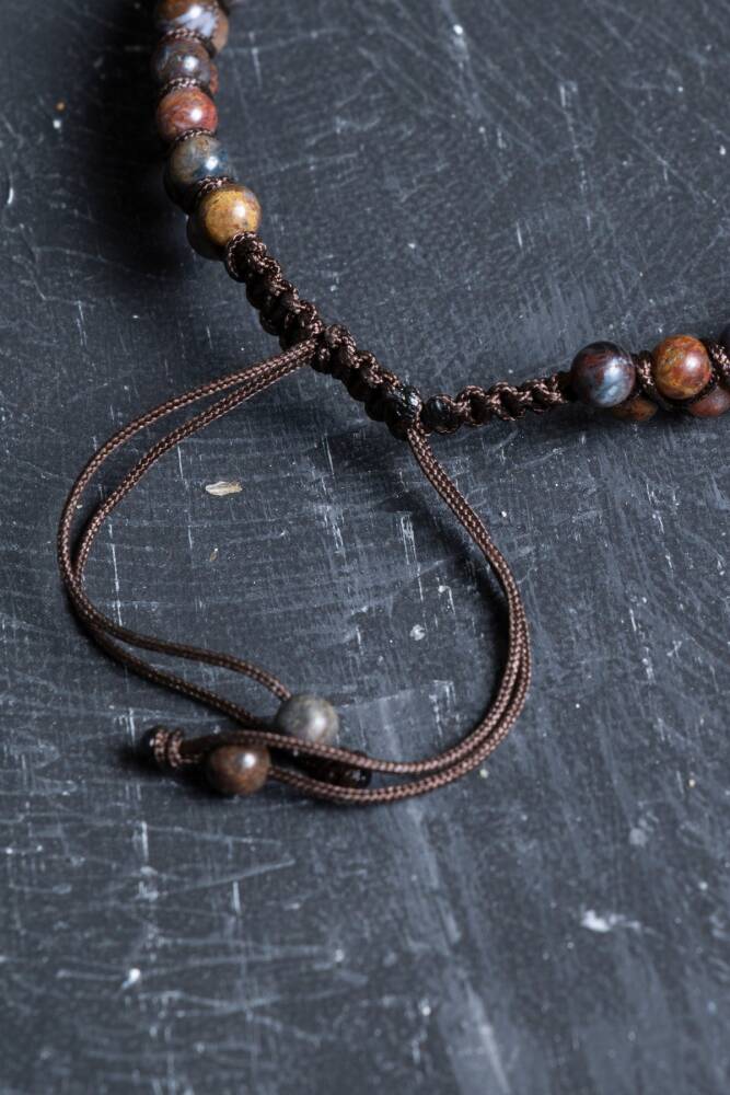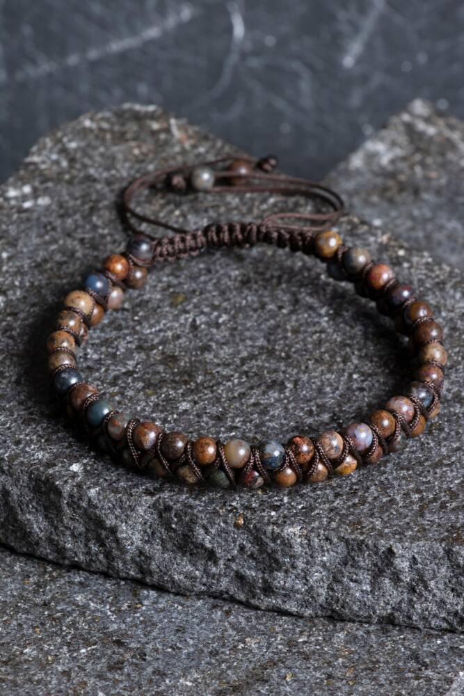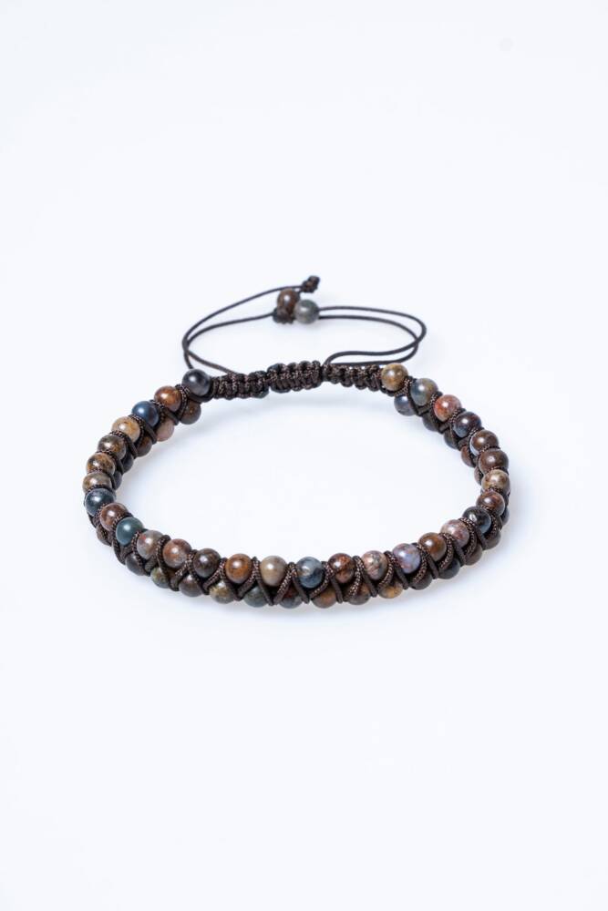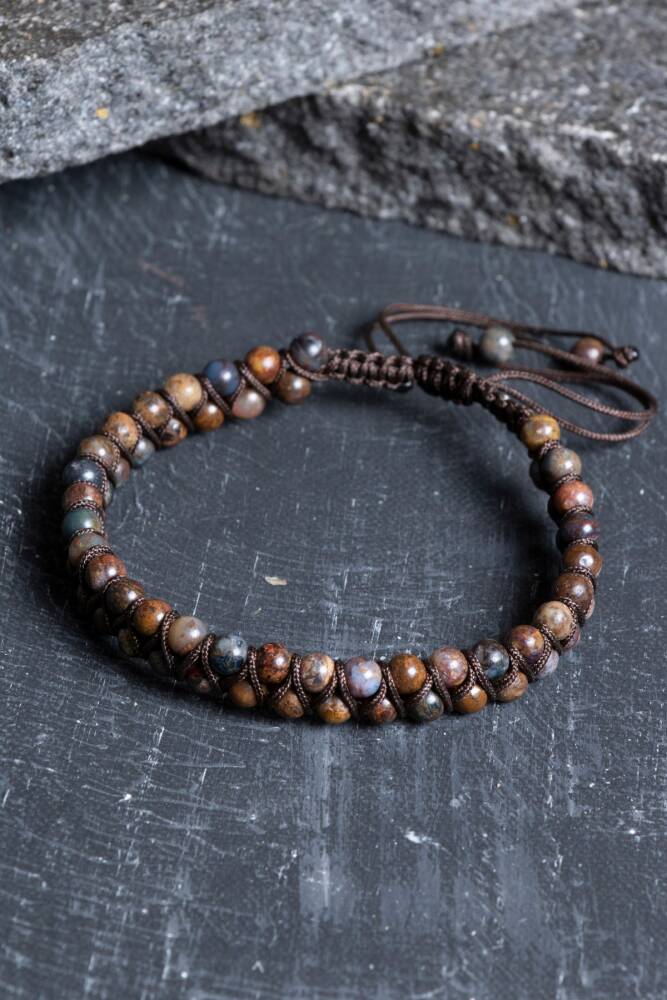 Pitersit Doğal Taş Çift Sıra Makrome Bileklik (3-4 mm)