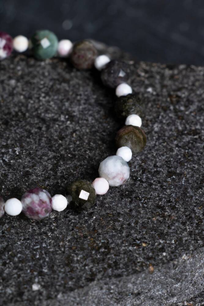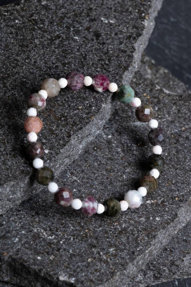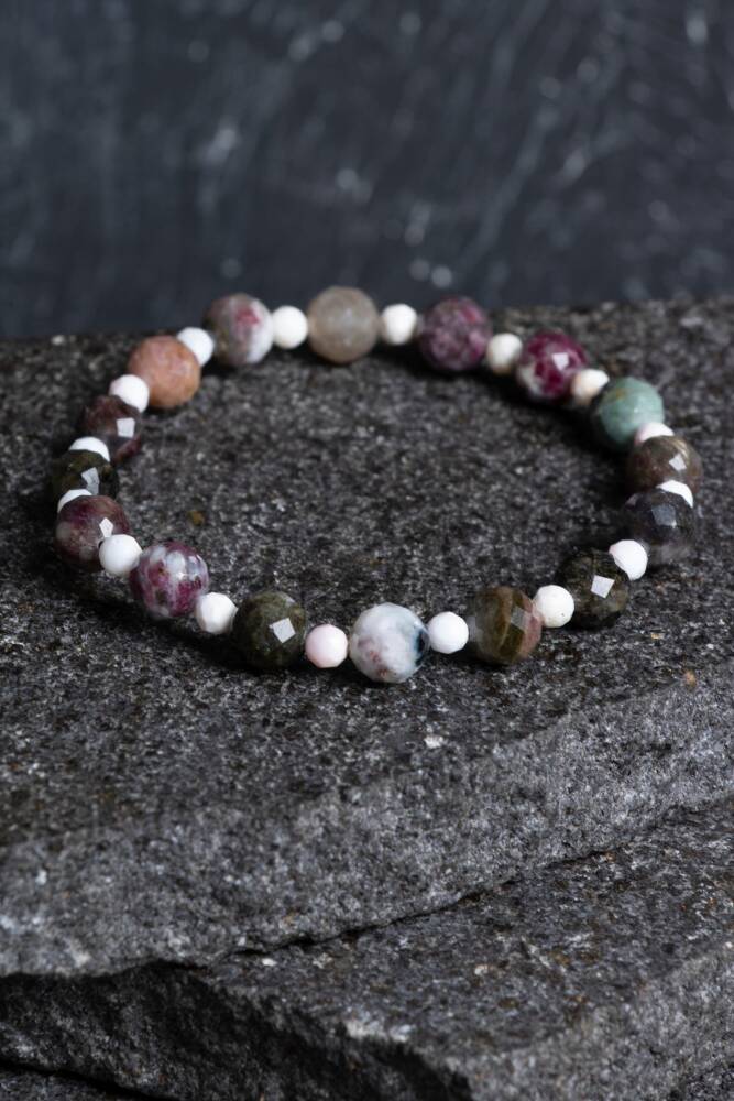 Renkli Turmalin ve Opal Doğal Taş Bileklik (Misinalı) Gökkuşağının şifalı renkleri ve ışığın büyüleyici dansı bileğinizde. Doğal taş dünyasının en geniş renk yelpazesine sahip Renkli Turmalin ile ışığı kırarak içindeki tüm renkleri yansıtan Opal, bu özel tasarımda buluşuyor. Esnek misinalı yapısıyla kullanım konforu sunan bu bileklik, hem ruhsal enerjinizi dengeler hem de her ışıkta farklı parlayan büyüleyici bir görünüm sergiler. Bu Işıltılı İkilinin Enerji Rehberi Renkli Turmalin (Denge ve Yaşam Gücü): Her rengi farklı bir çakra ile uyumludur. Pembe sevgi, yeşil şifa, mavi huzur, sarı ise öz güven verir. Bu haliyle Turmalin, bedendeki tüm enerji merkezlerini aynı anda hizalayan 'komple bir şifacıdır'. Opal (Gelecek ve Değişim): 'Gökkuşağı Taşı' olarak bilinir. Hayal gücünü artırır, duygusal derinliği destekler ve kişiye umut aşılar. Işığı yansıtma özelliğiyle kişinin kendi içsel ışığını fark etmesine yardımcı olur. Sinerjik Etki: Turmalin’in dengeleyici gücü, Opal’in ilham veren enerjisiyle birleştiğinde; yaratıcılığınızı artırırken duygusal dünyanızda sarsılmaz bir denge sağlar. Tasarım ve Teknik Özellikler A Kalite Taşlar: Turmalin’in şeker pembesinden çam yeşiline uzanan transparan tonları ile Opal’in sütlü veya ateşli yansımaları özenle harmanlanmıştır. Yüksek Mukavemetli Misina: Kopmaya dayanıklı, uzun ömürlü profesyonel esnek misina kullanılmıştır. Takıp çıkarması pratiktir ve her bilek ölçüsüne uyum sağlar. Işık Oyunu: Bileklik, özellikle gün ışığında Opal'in içindeki parıltılar ve Turmalin'in canlı renkleriyle sürekli değişen, canlı bir görünüm sunar. Konforlu Doku: Pürüzsüz yüzeyli taşlar, gün boyu cildinizde hafif ve lüks bir his bırakır. Metal içermediği için en hassas ciltler için bile uygundur. Neden Bu Bilekliği Tercih Etmelisiniz? Enerji Çokluluğu: Hayatınızın farklı alanlarında (sevgi, başarı, huzur) desteğe ihtiyaç duyduğunuzda, bu taşların karma enerjisi tam bir destekleyici rol üstlenir. Eşsiz ve Kişiye Özel: Doğal taşların yapısı gereği her bir taşın renk tonu ve Opal'in yansıması farklıdır; bu da bilekliğinizi tamamen size özel kılar. Her Kombine Uyum: İçindeki çoklu renkler sayesinde hem açık renkli yaz kombinlerinize hem de koyu renkli kış şıklığınıza kusursuz bir uyum sağlar.