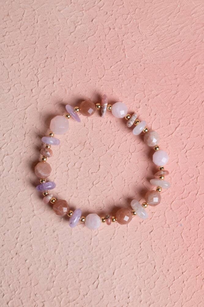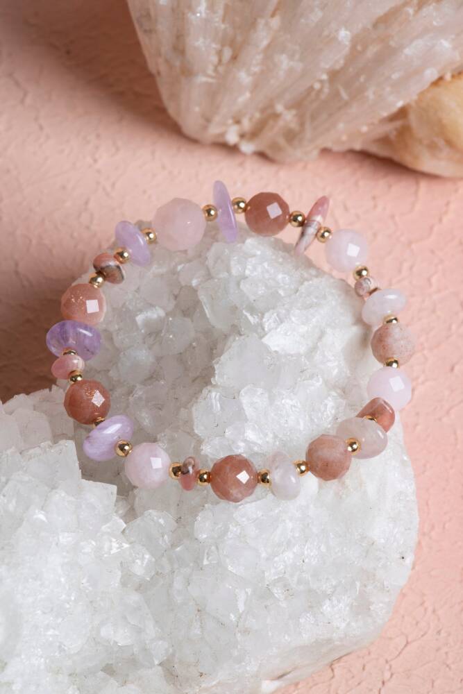 Rodokrosit, Güneş Taşı, Ametist ve Pembe Kuvars Doğal Taş Bileklik (Misinalı) Aşkın, neşenin ve ruhsal huzurun yüksek frekanslı buluşması. Bu özel tasarım, 'Kalp Şifacıları' ve 'Pozitif Enerji Kaynakları' olarak bilinen dört güçlü kristali bir araya getiriyor. Yüksek kaliteli esnek misina üzerine dizilen bu bileklik, hem duygusal dünyanızı dengelemek hem de yaşam enerjinizi (aura) parlatmak için tasarlandı. Bu Dörtlü Karışımın Enerji Rehberi Rodokrosit (Öz Sevgi ve Şifa): 'Aşk ve Şefkat Taşı'dır. Kişinin geçmişteki duygusal yaralarını sarmasına, kendini olduğu gibi sevmesine ve neşeyi yeniden keşfetmesine yardımcı olur. Güneş Taşı (Yaşam Enerjisi ve Liderlik): İçsel gücü ve öz güveni temsil eder. Kasveti dağıtır, motivasyonu artırır ve hayata karşı 'parlayan' bir duruş sergilemenizi sağlar. Ametist (Ruhsal Dinginlik ve Koruma): Zihni sakinleştirir, stresi ve kaygıyı uzaklaştırır. Negatif enerjileri bloke ederek ruhsal bir koruma kalkanı oluşturur. Pembe Kuvars (Koşulsuz Sevgi): Kalp çakrasının temel taşıdır. İlişkilerde uyumu, barışı ve huzuru destekler; empati duygusunu güçlendirir. Tasarım ve Teknik Detaylar Renk Harmonisi: Rodokrosit’in desenli pembesi, Güneş Taşı’nın simli turuncusu, Ametist’in asil moru ve Pembe Kuvars’ın yumuşak dokusuyla görsel bir şölen sunar. A Kalite Doğal Taşlar: Taşların en doğal ve enerjisi yüksek halleri seçilerek hazırlanmıştır. Yüksek Mukavemetli Misina: Uzun ömürlü kullanım için kopmaya dayanıklı, kristalize şeffaf lastik misina kullanılmıştır. Konforlu Yapı: Gün boyu bileğinizde ağırlık yapmayan, takıp çıkarması pratik ve cildi tahriş etmeyen pürüzsüz taşlar. Neden Bu Bilekliği Tercih Etmelisiniz? Duygusal Detoks: Kalbinizi ve zihninizi negatif düşüncelerden arındırıp pozitif frekansa geçmek için mükemmel bir yardımcıdır. Dişil Enerji ve Işıltı: Özellikle dişil enerjiyi dengeleyen ve aura alanını genişleten taşların birleşimiyle kendinizi daha çekici ve dengeli hissetmenizi sağlar. Şık Bir Enerji Kaynağı: Renk geçişleri sayesinde her türlü kıyafetle uyum sağlayan, canlı ve enerjik bir aksesuardır.
