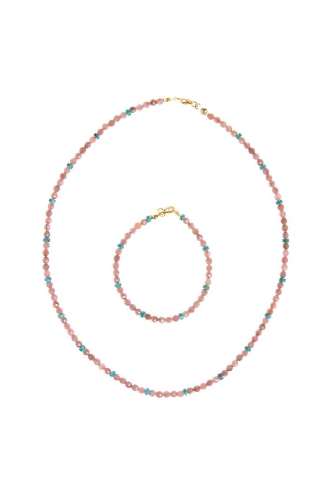 Sevgi, denge ve zarafet bu özel takı setinde bir araya geliyor. Rodokrozit, kalpten gelen şefkati besler, duygusal iyileşmeyi destekler ve sevgi dolu bir enerji yayar. Turkuaz, negatif enerjilere karşı güçlü bir koruma sağlar ve içsel huzurla birlikte net iletişimi teşvik eder. Hem kolye hem bileklik, detaylarındaki gerçek gümüş kapama ile tamamlanmış, zarif ve uyumlu bir bütünlük oluşturur. Her taş, %100 sertifikalı ve doğal olup, el işçiliğiyle özenle bir araya getirilmiştir. ✨ Öne Çıkan Özellikler: Sertifikalı doğal Rodokrozit ve Turkuaz taşları Şık ve dayanıklı gerçek gümüş kapama detayları Sevgi, koruma, duygusal denge ve içsel huzur etkileri El yapımı, unisex ve tamamlayıcı tasarım Günlük şıklığa eşlik eden ve anlamlı bir hediye alternatifi Doğanın yumuşak ama güçlü enerjisini yansıtan bu set, sadece bir aksesuar değil; kalpten gelen zarif bir enerji taşıyıcısıdır.