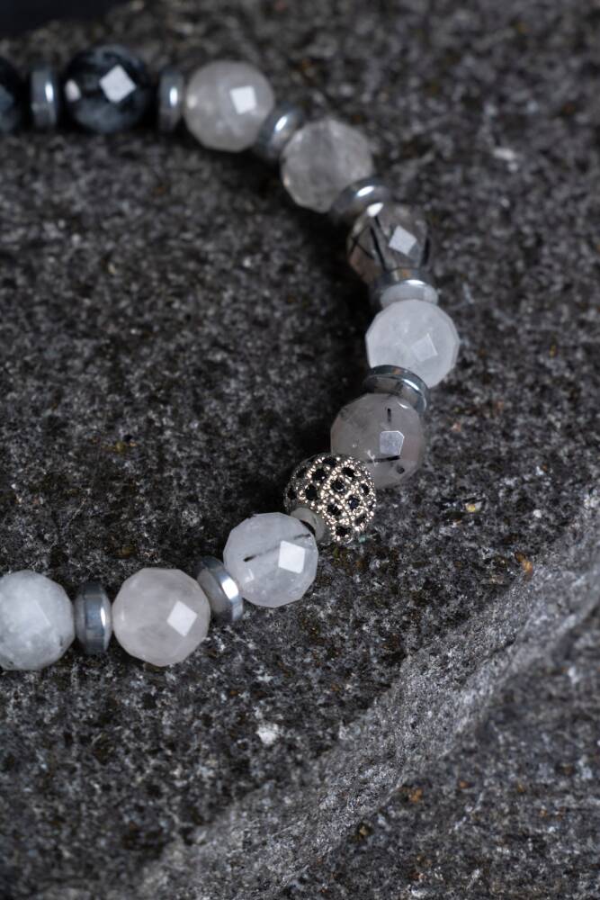Rutilli Kuvars Zirkon Aparatlı Doğal Taş Bileklik İçsel ışığın keşfi ve zirkonun göz alıcı pırıltısıyla gelen lüks. Doğanın içinde altın teller saklı mucizesi Rutilli Kuvars, zirkon taşlı ışıltılı aparatlarla birleşerek bir takıdan çok daha fazlasını, adeta bir 'ışık tılsımı' sunuyor. Bu bileklik, yüksek frekanslı enerjiyi modern mücevher şıklığıyla bileğinize taşıyor. Rutilli Kuvars'ın Enerji Rehberi Enerji İletkeni: Kuvarsın şeffaf yapısı içindeki 'Rutil' adı verilen titanyum iğneler, enerjiyi yükseltme ve iletme özelliğine sahiptir. Bu taş, ruhsal gelişimi hızlandırır ve aura alanını temizler. Zihinsel Netlik: Kararsızlık anlarında düşünceleri berraklaştırır, odaklanmayı artırır ve hayallerinizi gerçeğe dönüştürmeniz için gereken vizyonu sağlar. Motivasyon ve Neşe: Geçmişin yüklerinden arınmanıza yardımcı olarak hayata karşı daha umutlu ve canlı bir bakış açısı geliştirmenizi destekler. Zirkon Etkisi: Tasarıma eklenen zirkon aparatlar, Rutilli Kuvars'ın içindeki altın yansımaları pırlanta ışıltısıyla taçlandırarak öz güveninizi ve karizmanızı pekiştirir. Tasarım ve Teknik Özellikler A Kalite Kristaller: İçindeki iğneli yapıları (Rutil telleri) belirgin, yüksek şeffaflıkta ve kaliteli taşlar özenle seçilmiştir. Işıltılı Zirkon Aparatlar: Kararmaya karşı dayanıklı özel altın veya gümüş kaplama üzerine yerleştirilmiş, yüksek kaliteli zirkon taşlı ayraçlar kullanılmıştır. Esnek Misinalı Yapı: Kopmaya ekstra dayanıklı profesyonel takı misinası ile hazırlanmıştır. Takıp çıkarması pratiktir ve her bilek ölçüsüne tam uyum sağlar. Estetik İşçilik: Düğüm gizleme tekniği sayesinde pürüzsüz bir görünüm sunar. Saat yanına veya tek başına kullanım için idealdir. Neden Bu Bilekliği Tercih Etmelisiniz? Lüks ve Şifa Bir Arada: Hem doğal taşların şifalı enerjisinden faydalanmak hem de şık bir mücevher görünümü sergilemek isteyenler için mükemmeldir. Dönüşüm Enerjisi: Hayatınızda yeni bir döneme girerken veya enerjinizi yükseltmek istediğinizde Rutilli Kuvars'ın rehberliğini hissedebilirsiniz. Eşsiz Desenler: Her bir taşın içindeki rutil telleri doğa tarafından farklı dizilmiştir; bu da sahip olduğunuz bilekliği dünyada tek ve size özel kılar.