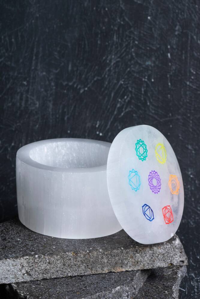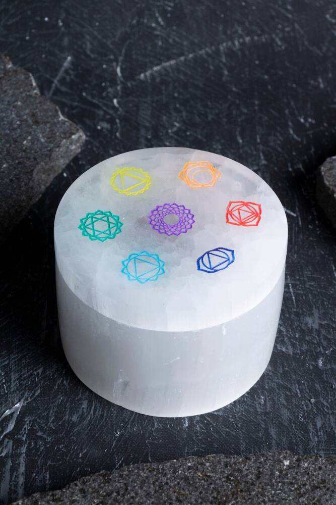 - Türkiye menşeli, doğal taş malzemeden üretilmiş olup, yerel zanaatkarların el emeğiyle şekillendirilmiştir. - Doğa temalı tasarımıyla, doğanın huzurunu ve enerjisini yansıtan bir aksesuar kutusudur. - Tek parça halinde gelen bu yuvarlak takı kutusu, minimalist ve şık bir görünüm sunar. - Sertifikalı Selenit taşı kullanılarak üretilmiş olup, doğal taşın estetik ve enerji özelliklerini ön plana çıkarır. Çakra Dengeleme ve Uyum: Kutu üzerindeki yedi ana Çakra sembolü, taşın arındırıcı enerjisini odaklayarak takılarınızın ve çevrenizdeki enerjinin uyumlanmasına ve dengelenmesine yardımcı olur. Sürekli Enerji Temizliği: Takılarınızı kutunun içinde sakladığınız süre boyunca, Selenit'in güçlü enerjisi sayesinde negatif titreşimlerden arınırlar ve her kullanımdan önce en yüksek frekanslarına geri dönerler. Ruhsal Berraklık ve Huzur: Selenit, ortamdaki statik ve negatif enerjiyi nötralize eder. Bu kutuyu yatak odanıza veya meditasyon alanınıza koyarak derin bir huzur ve ruhsal berraklık atmosferi yaratabilirsiniz. Pratik ve Mistik Estetik: Yuvarlak kutu formu, bütünlüğü ve sürekliliği simgelerken, yarı saydam Selenit ve üzerindeki mistik Çakra motifleri, göz alıcı, şık ve ruhani bir estetik sunar.