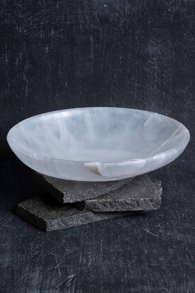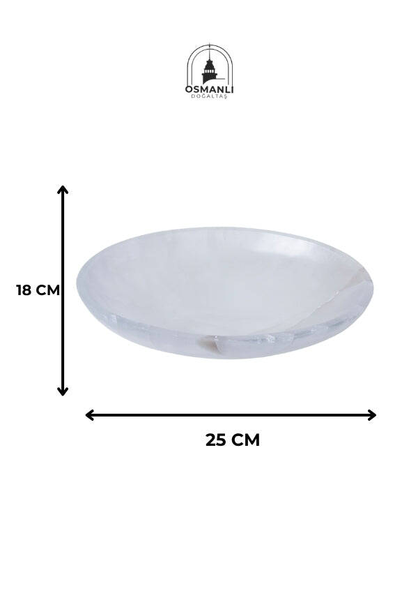 Mekân Temizliği ve Huzur: Selenit, ortamdaki statik ve negatif enerjiyi nötralize etme yeteneğiyle bilinir. Elips tabağın varlığı, çalışma veya yaşam alanınıza derin bir huzur ve akış hissi getirir.