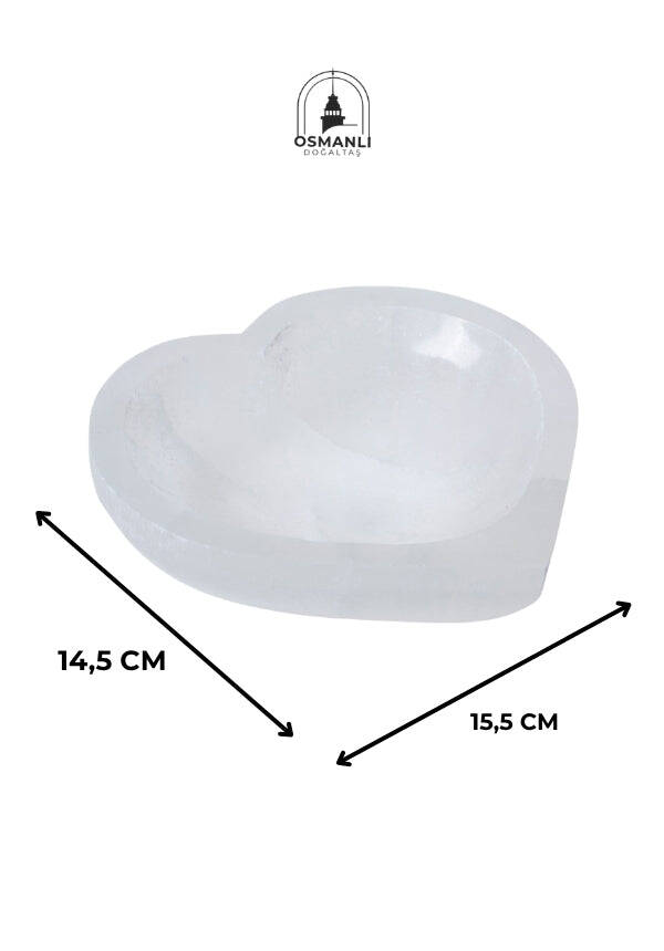 Romantik ve Ruhani Estetik: Kalp formu, Selenit'in yarı saydam, bembeyaz ışıltısıyla birleşerek zarif, romantik ve ruhani bir estetik sunar.