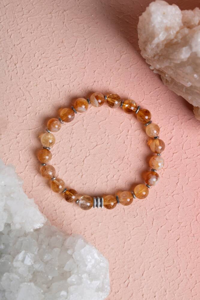 Sitrin Gümüş Aparatlı Doğal Taş Bileklik (Misinalı) Güneşin bolluk enerjisi ve gümüşün zarafetiyle parlayın. 'Başarı Taşı' olarak bilinen Sitrin, 925 ayar gümüş detaylarla birleşerek hem ruhsal hem de görsel bir şölen sunuyor. Kullanımı son derece pratik olan esnek misinalı yapısı, bu değerli kristalin enerjisini gün boyu konforla üzerinizde taşımanıza olanak tanır. Sitrin ve Gümüşün Enerji Sinerjisi Sitrin (Bolluk ve Motivasyon): Pozitif enerjiyi artıran, yaşama sevincini tetikleyen bir taştır. Zihinsel netlik sağlar, kararsızlığı giderir ve maddi-manevi bereketi hayatınıza davet eder. Negatif enerjiyi emmek yerine dağıtma özelliğiyle bilinir. 925 Ayar Gümüş Aparatlar: Gümüş, enerjiyi en iyi ileten metallerden biridir. Sitrin’in yüksek frekansını stabilize ederken, tasarıma modern ve seçkin bir mücevher havası katar. Sinerjik Etki: Bu kombinasyon, öz güveninizi tazeleyerek hedeflerinize odaklanmanız için gereken disiplini ve neşeyi aynı anda sunar. Tasarım ve Teknik Özellikler A Kalite Sitrin Taşları: Şeffaf sarıdan sıcak bal tonlarına uzanan, ışığı yansıtan yüksek kaliteli doğal kristaller kullanılmıştır. 925 Ayar Gümüş Detaylar: Bileklikte kullanılan tüm ayraçlar, pullar veya düğüm gizleyiciler gerçek gümüşten üretilmiştir. Yüksek Mukavemetli Esnek Misina: Kopmaya dayanıklı, uzun ömürlü profesyonel takı misinası sayesinde her bilek ölçüsüne uyum sağlar ve takıp çıkarması oldukça kolaydır. Neden Bu Bilekliği Tercih Etmelisiniz? Bereket Tılsımı: İş görüşmeleri, yeni projeler veya finansal hedeflerinizde Sitrin'in 'şans ve başarı' frekansından destek alabilirsiniz. Zihinsel Aydınlık: Gün içindeki karmaşada odağınızı korumak ve kendinizi daha enerjik hissetmek için ideal bir yardımcıdır. Işıltılı ve Modern Stil: Sarı kristallerin sıcaklığı ile gümüşün soğuk şıklığı, her türlü kıyafet kombinine (özellikle saat yanına) harika bir derinlik katar.