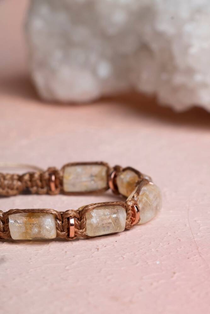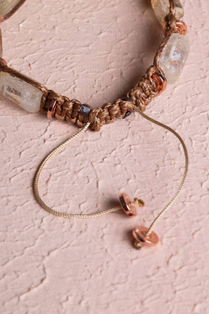 Sitrin’in pozitif enerji ve bolluk veren gücü ile Hematit’in koruyucu enerjisi, kadınlara özel zarif bir makrome bileklikte buluşuyor. El işçiliğiyle hazırlanan bu tasarım, %100 doğal ve sertifikalı taşlarla hem ruhunuza canlılık katar hem de günlük stilinize şıklık ekler.