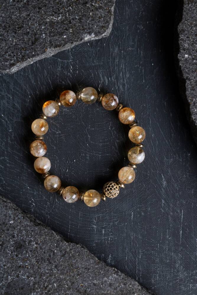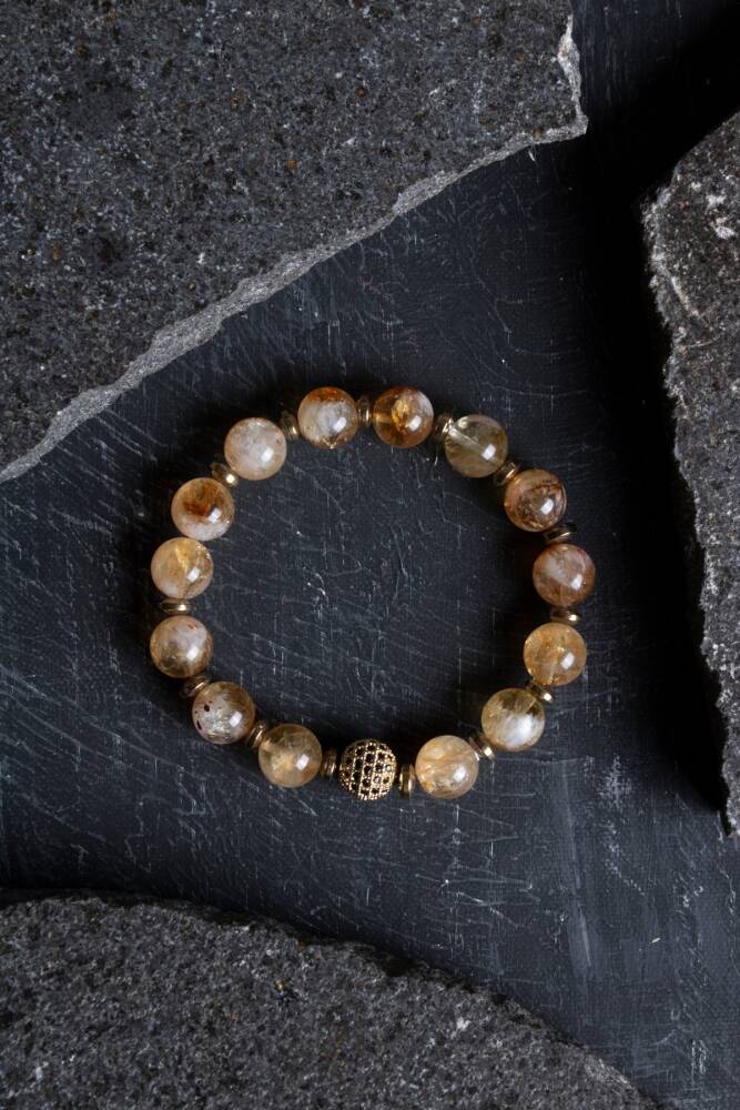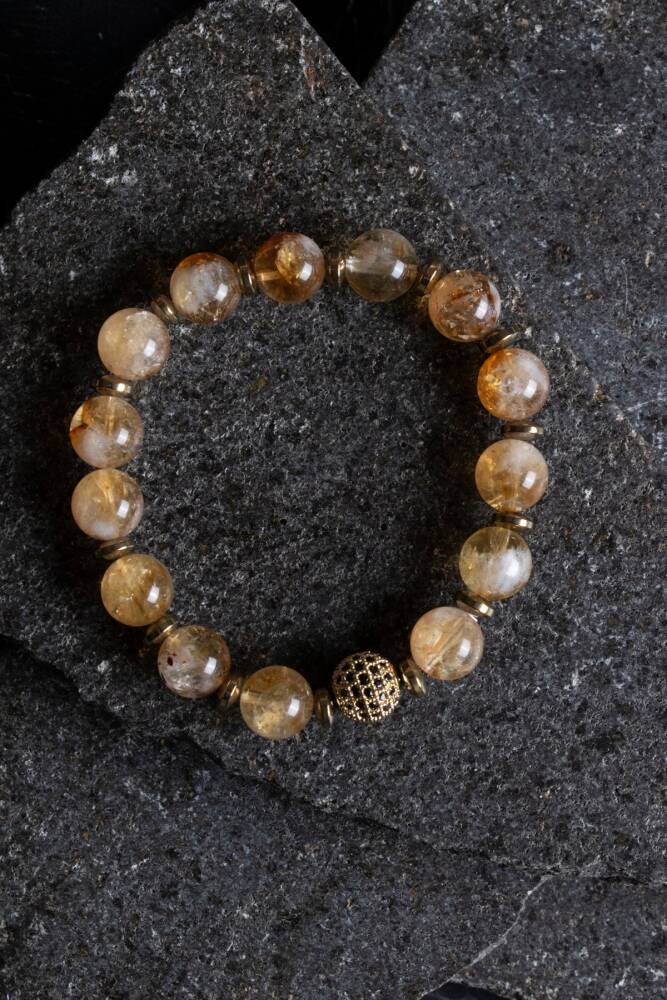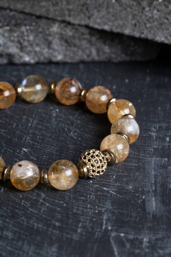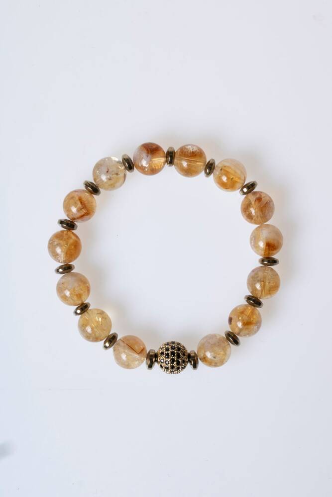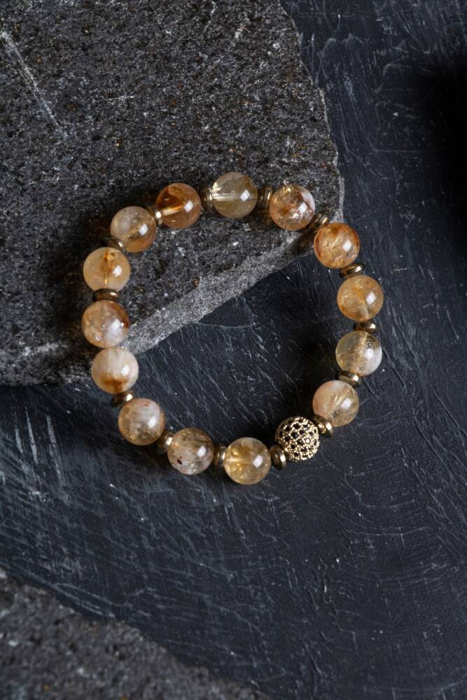 Zenginliğin ve yaşama sevincinin sembolü Sitrin ile topraklanmanın ve kararlılığın taşı Hematit, göz alıcı Zirkon detaylarla bu özel bileklikte buluştu. Bu tasarım; bir yandan enerjinizi en üst seviyeye çıkarıp bolluğu hayatınıza davet ederken, diğer yandan sizi sakin ve odaklanmış tutarak adımlarınızı yere sağlam basmanızı sağlar.