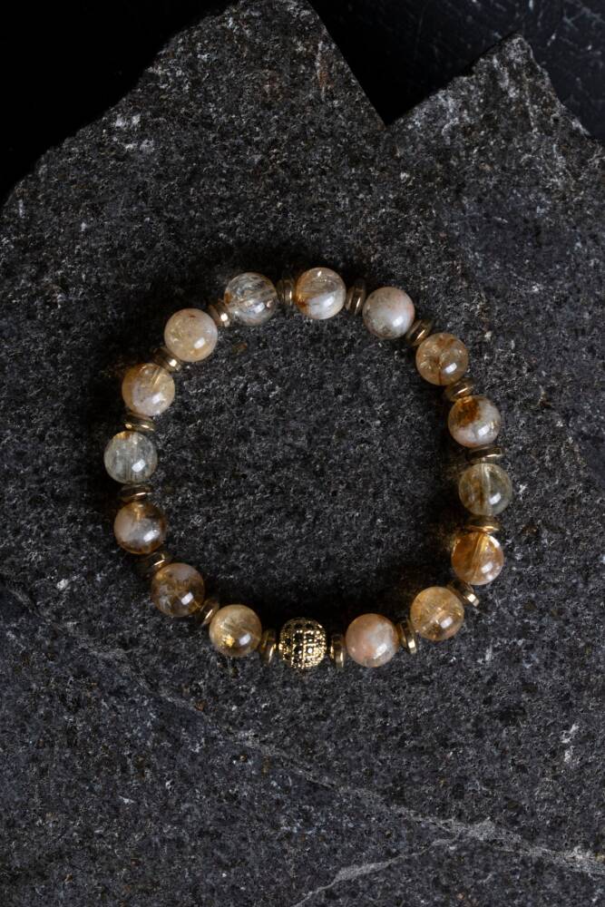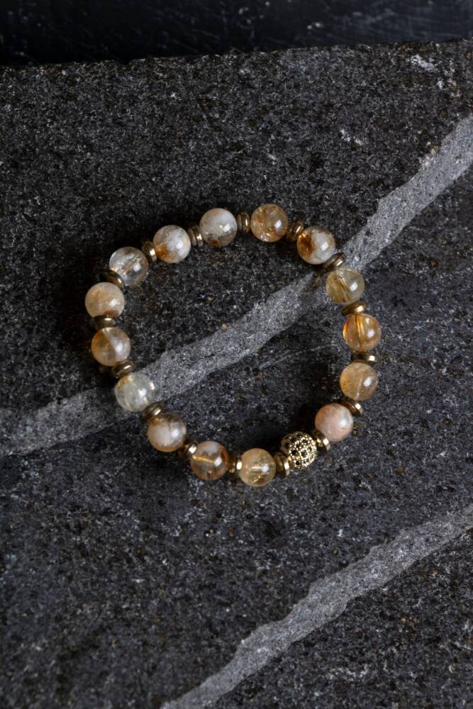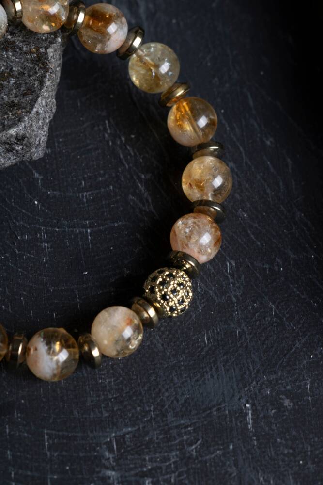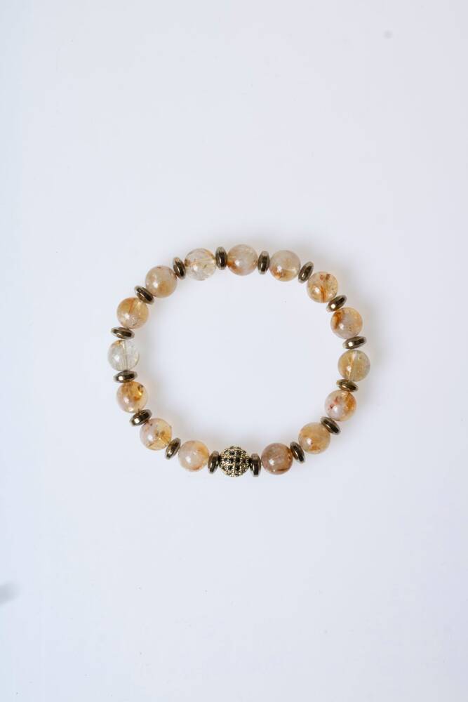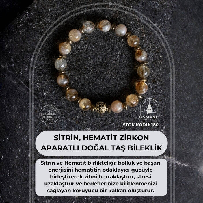 Zenginliğin ve yaşama sevincinin sembolü Sitrin ile topraklanmanın ve kararlılığın taşı Hematit, göz alıcı Zirkon detaylarla bu özel bileklikte buluştu. Bu tasarım; bir yandan enerjinizi en üst seviyeye çıkarıp bolluğu hayatınıza davet ederken, diğer yandan sizi sakin ve odaklanmış tutarak adımlarınızı yere sağlam basmanızı sağlar.