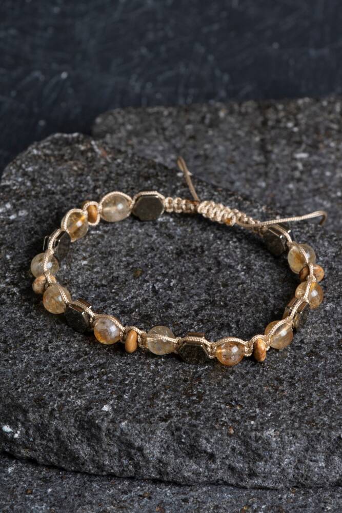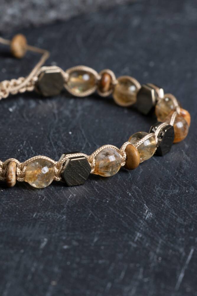 Sitrin, Jasper ve Hematit Doğal Taş Makrome Bileklik
