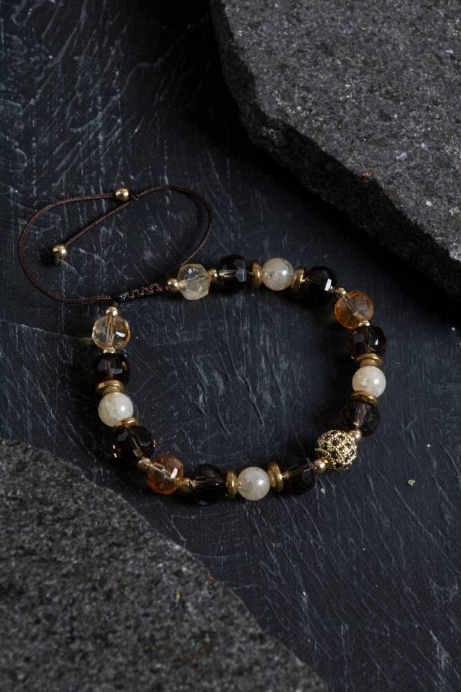 Canlı tonlara sahip bu bileklik, sertifikalı sitrin ve apatit taşlarıyla hazırlanmıştır. Sitrin taşı, enerjisiyle bolluk, neşe ve pozitifliği hayatınıza çekerken; apatit zihni berraklaştırır, motivasyon ve odaklanmayı destekler. Renkli ip detayı ve parlak merkez taşı ile hem enerjik hem de dikkat çekici bir aksesuar arayanlar için mükemmel bir seçimdir.