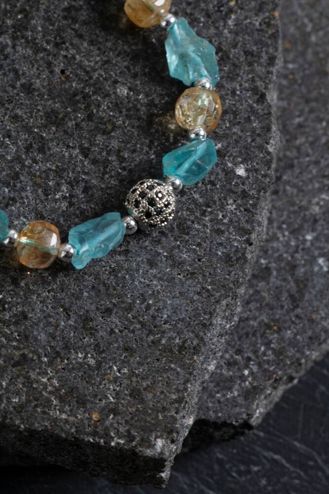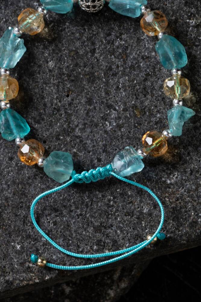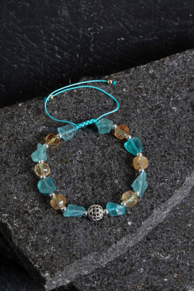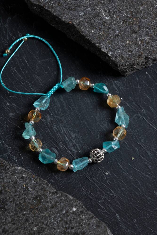 Ilık tonlarıyla enerji yayan bu bileklik, sertifikalı sitrin ve güneş taşı kullanılarak özenle hazırlanmıştır. Sitrin taşı bolluk, neşe ve pozitif düşünceyi hayatınıza çekerken; güneş taşı canlılık, özgüven ve motivasyon enerjisi sunar. Altın detaylarla zenginleştirilen bu özel tasarım, hem ruhsal destek hem de stil sahibi bir aksesuar arayanlar için ideal bir tercihtir.