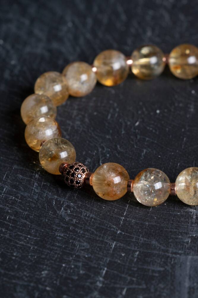 A Kalite 10 mm Taşlar: Seçkin, berrak ve yüksek enerjili 10 mm boyutunda birinci sınıf Sitrin taşları kullanılmıştır.