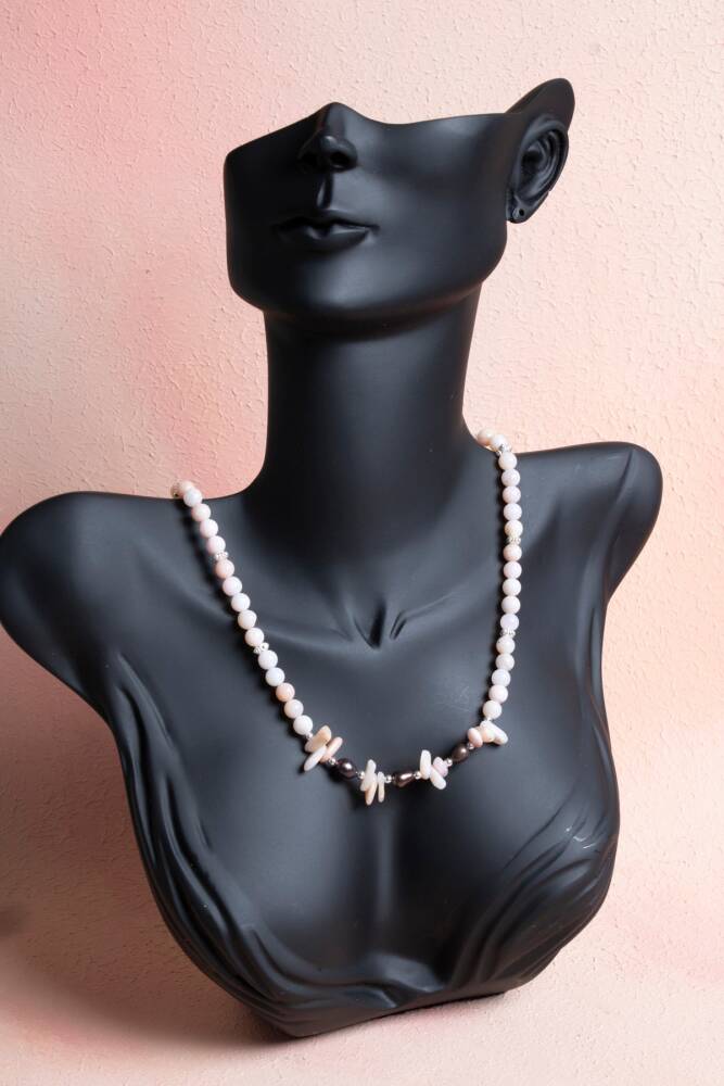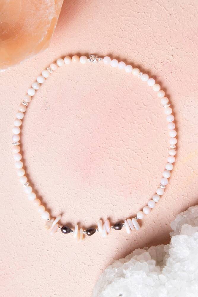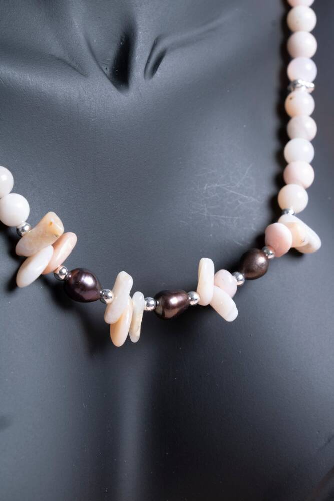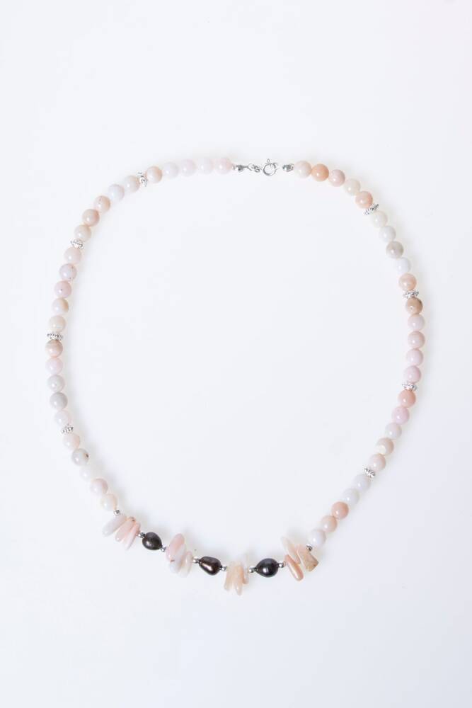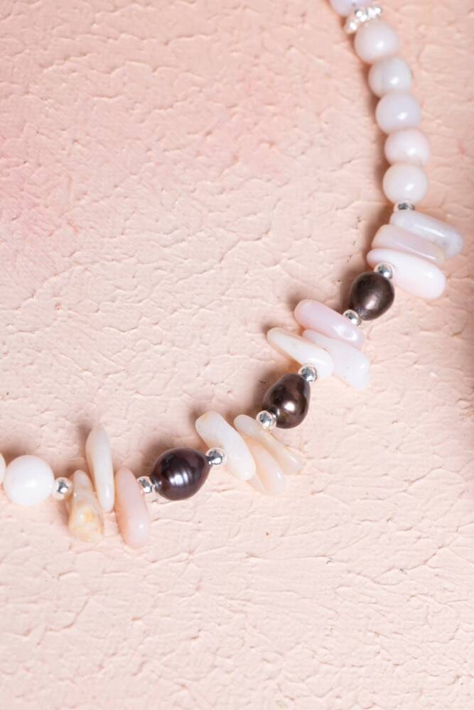 Siyah İnci & Pembe Opal Doğal Taş Kolye
