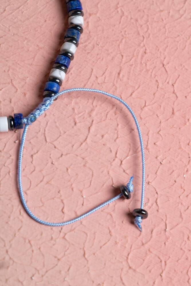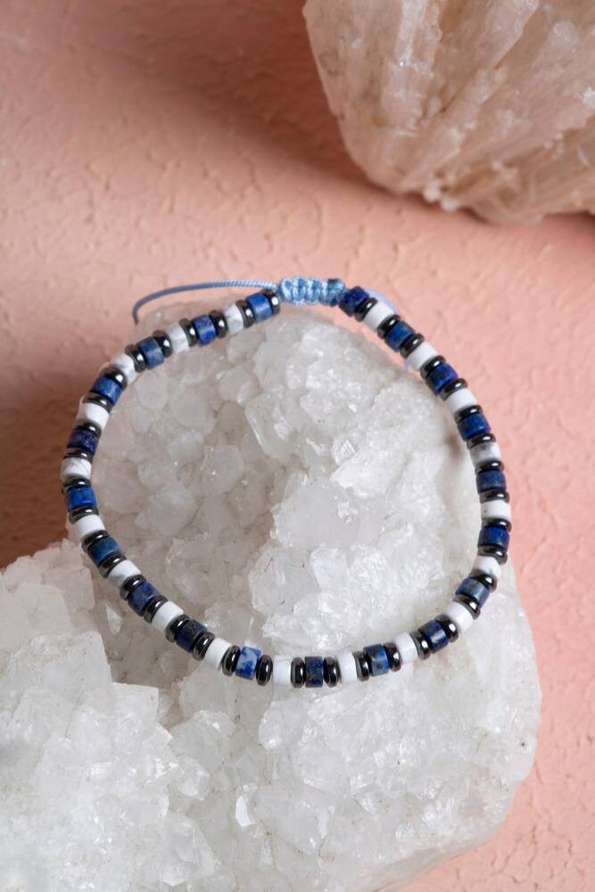 Sodalit, Havlit ve Hematit Doğal Taş Makrome Bileklik Zihinsel dinginlik, içsel huzur ve güçlü bir topraklama dengesi. Mantığın ve sezginin taşı Sodalit, sakinliğin simgesi Havlit ve koruyucu gücüyle Hematit, el emeği makrome işçiliğiyle bu tasarımda bir araya geliyor. Ayarlanabilir asansör sistemi sayesinde bileğinize tam uyum sağlayan bu bileklik, hem modern tarzınızı tamamlar hem de gün boyu zihinsel bir berraklık sunar. Bu Üçlü Karışımın Enerji Rehberi Sodalit (Zihin ve İletişim): 'Akıl Taşı' olarak bilinir. Karışık düşünceleri netleştirir, mantıklı düşünmeyi destekler ve kişinin kendini dürüstçe ifade etmesine yardımcı olur. Panik duygusunu yatıştırarak öz güveni artırır. Havlit (Sakinlik ve Farkındalık): Stresi ve öfkeyi azaltan, huzur veren bir taştır. Zihindeki gürültüyü susturarak odaklanmayı kolaylaştırır ve uyku kalitesini destekleyen dingin bir enerji yayar. Hematit (Topraklanma ve Koruma): Bedendeki statik elektriği ve negatif enerjiyi emer. Diğer taşların enerjisini stabilize ederken, kişiye dayanıklılık, cesaret ve disiplin verir. Tasarım ve İşçilik Özellikleri Estetik Renk Uyumu: Sodalit'in derin lacivert-beyaz damarlı dokusu, Havlit'in mermer desenli saf beyazlığı ve Hematit'in metalik antrasit parlaklığı, modern ve karakteristik bir kontrast oluşturur. El İşçiliği Makrome: Suya ve günlük kullanıma dayanıklı özel paraşüt ipi ile örülmüştür. Uzun ömürlüdür ve zamanla formunu kaybetmez. Asansörlü (Ayarlanabilir) Kilit: Kilit sistemi sayesinde her bilek ölçüsüne göre kolayca daraltılıp genişletilebilir, konforlu bir kullanım sunar. Unisex Tasarım: Hem kadınlar hem de erkekler için uygundur; tek başına veya saat yanında şık bir katman olarak kullanılabilir. Neden Bu Bilekliği Tercih Etmelisiniz? Odaklanma ve Netlik: İş veya eğitim hayatında zihinsel yoğunluğun arttığı dönemlerde odaklanmanıza ve sakin kalmanıza yardımcı olur. Stres Kalkanı: Günün getirdiği duygusal yorgunluğu Havlit ile yatıştırırken, Hematit ile enerjinizi yere sağlam basacak şekilde topraklayabilirsiniz. Zamansız Stil: Lacivert, beyaz ve metalik tonların birleşimi, her mevsim ve her tarz kıyafetle kusursuz bir uyum sağlar.