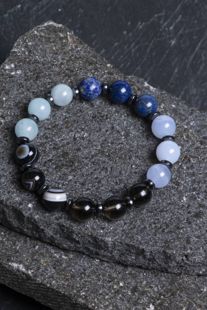 Bu özel erkek bilekliği, Terazi burcunun adalet duygusu, zarif yaklaşımı ve dengeli yapısına hitap eden doğal taşlarla tasarlandı: