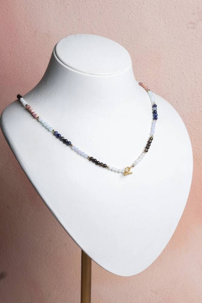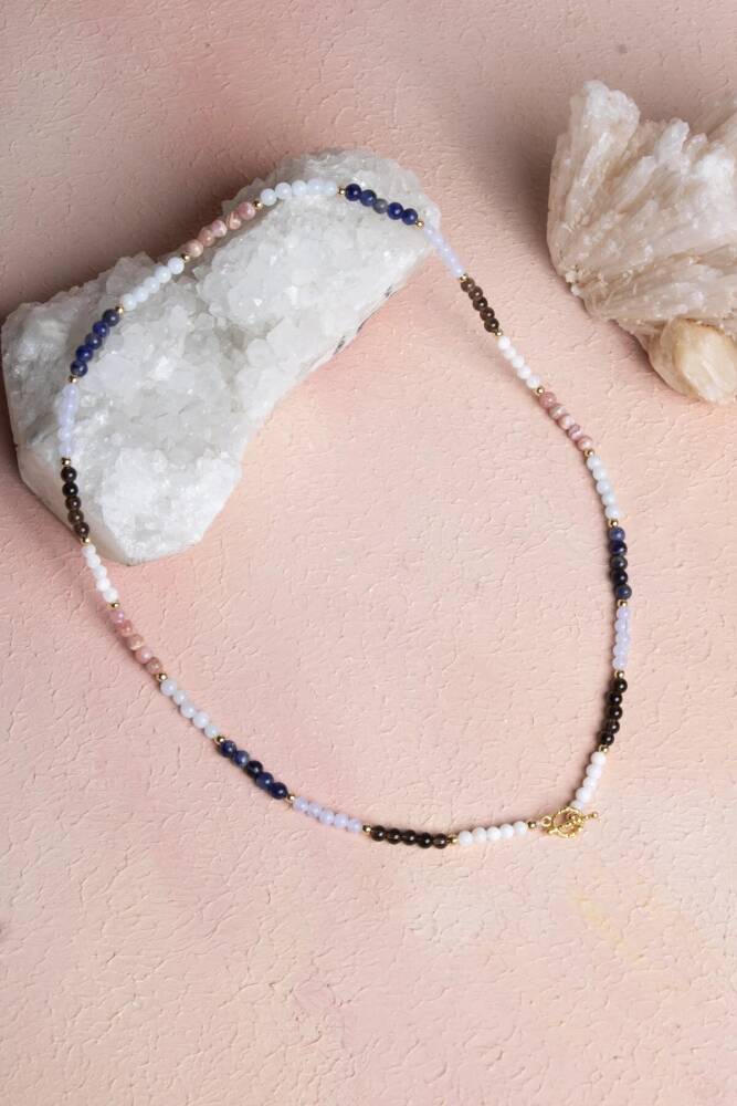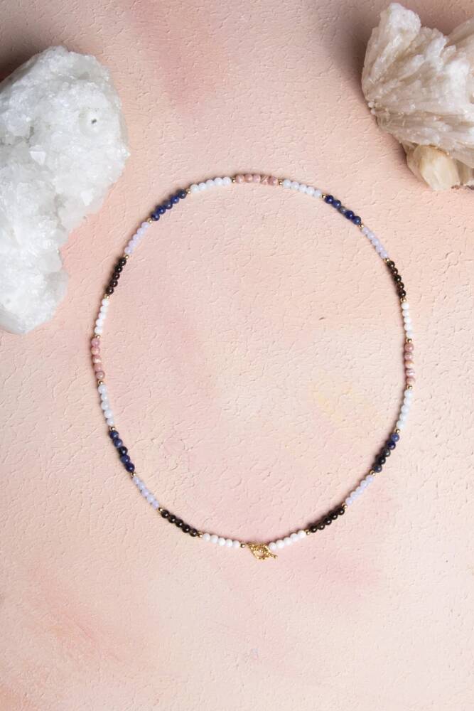 Terazi Burcuna Özel Enerji Kolyesi: Denge, Zarafet ve Uyum Denge, zarafet ve uyum… Terazi burcunun estetik, adaletli ve sevgi dolu enerjisini kalbinize yakın taşıyın. Bu özel 4mm doğal taş kolye, Terazi burcunun sosyal, dengeli, zarif ve huzur arayan doğasına hitap eden özenle seçilmiş doğal taşlarla tasarlandı. 4mm'lik narin küreler, kolyeye minimal ama derin anlamlı bir hava katıyor. Kolyedeki Güçlü Taşlar ve Anlamları: Güneş Taşı – Özgüveni artırır, pozitif enerji ve yaşam sevinci kazandırır. Akuamarin – Zihinsel berraklık, huzur ve yumuşak iletişim enerjisi verir. Ay Taşı – Sezgiyi güçlendirir, duygusal denge ve içsel rehberlik sağlar. Lapis Lazuli – Bilgelik, içgörü ve güçlü iletişim yeteneği sunar. Kalsedon – Sakinlik, uyum ve duygusal denge getirir. Dumanlı Kuvars – Negatif enerjiyi arındırır, topraklama ve netlik sağlar. Bu altı taşın uyumu, Terazi burcunun hem zarif hem de dengeli yapısını, sevgi dolu doğasını ve uyum arayışını zarif bir şekilde yansıtır. 4mm Kolye için Öne Çıkan Özellikler: Sertifikalı Güneş Taşı, Akuamarin, Ay Taşı, Lapis Lazuli, Kalsedon ve Dumanlı Kuvars taşları. Terazi burcuna özel enerji: Denge, zarafet, huzur, sezgi ve iletişim gücü. Zarif 4mm Boyut: Doğal taşların gücünü taşıyan, günlük kullanım için ideal, minimalist ve narin tasarım. Feminen ve Güçlü Görünüm: Hem enerjisel denge sunar hem de günlük stilinize sofistike bir dokunuş katar. Kalbe Yakın Enerji: Uyum ve dengeyi destekleyen taşları boynunuzda taşıyarak ruhsal ve duygusal destek sağlayın. Bu kolye; sadece bir aksesuar değil, aynı zamanda Terazi burcunun zarif, dengeli ve sevgi dolu doğasını taşıyan, kalbinize ve ruhunuza dokunan özel bir parçadır.