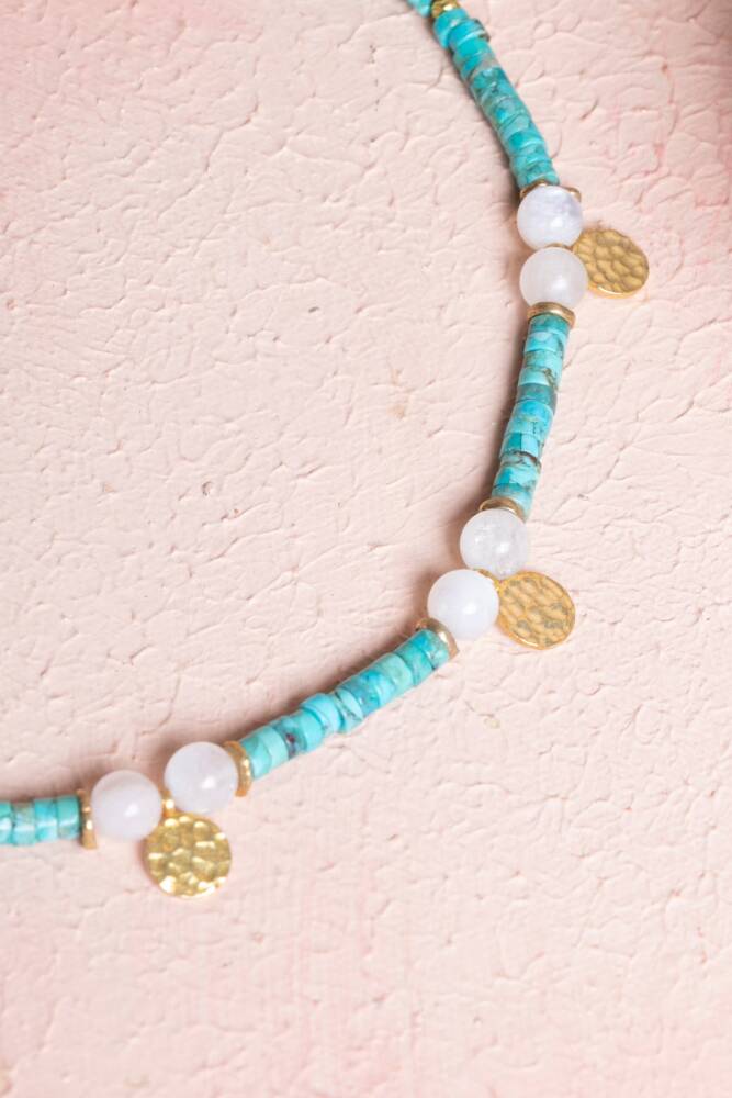 Turkuaz & Ay Taşı Gümüş Aparatlı Doğal Taş Kolye