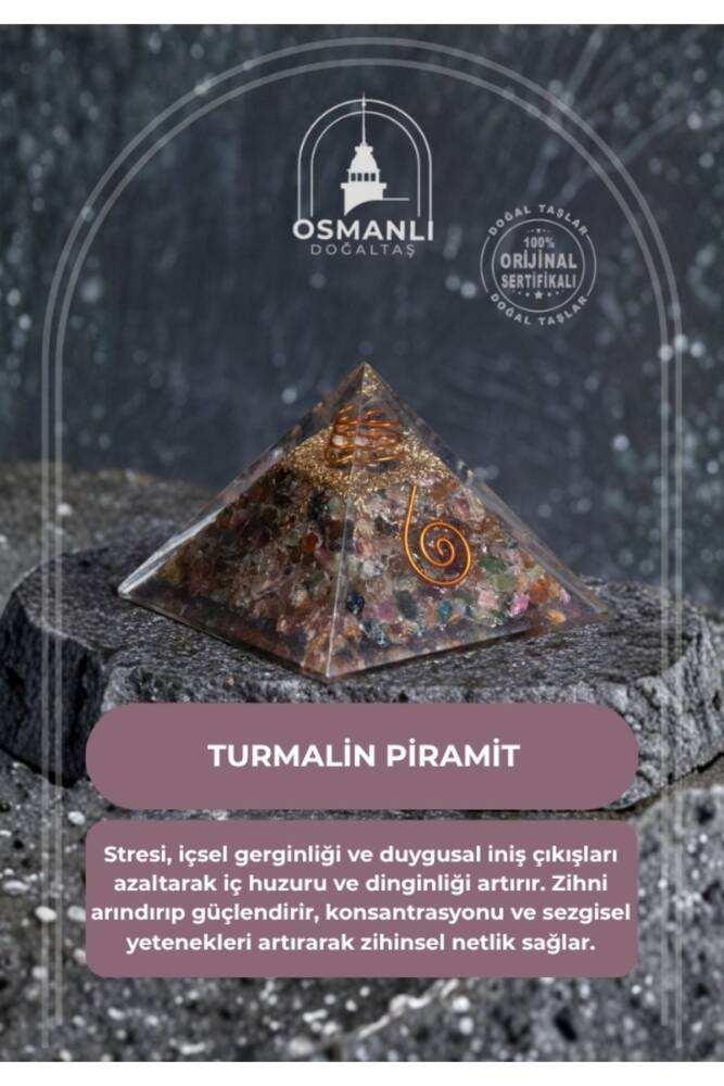 - Doğal taş malzemeden üretilmiş, her birinin benzersiz yapısı ve yapısıyla dikkat çeken bir parça. - Türkiye'nin zengin doğal kaynaklarından elde edilen Turmalin Piramit, doğanın sunduğu güzellikleri evinize taşıyor. - Tek parça halinde sunulan bu ürün, minimalist ve şık bir dekorasyon unsuru olarak mevcuttur. - Sertifikalı olmasıyla kalite ve orijinallik seçenekleri sunar, kullanılabilir. Güçlü Enerji Kalkanı: Negatif enerjiyi, nazarı ve psişik saldırıları bloke ettiğine inanılır. Koruması: Elektronik cihazların (bilgisayar, telefon) yaydığı elektromanyetik radyasyona karşı doğal bir bariyer oluşturur. Topraklanma ve Denge: Kök çakranızı dengeleyerek sizi fiziksel dünyaya bağlar, zihinsel dağınıklığı ve kaygıyı azaltır.