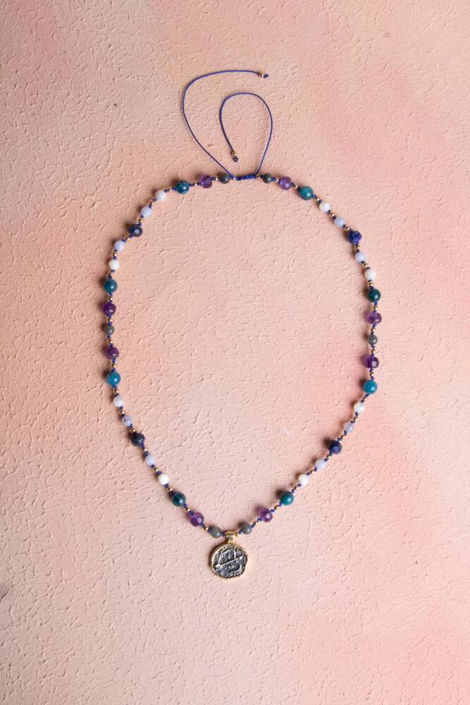 %100 doğal ve sertifikalı taşlarla el işçiliğiyle hazırlanan bu kolye, hem ruhsal destek sunar hem de günlük stilinize şıklık katar.