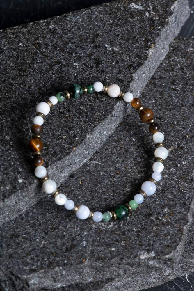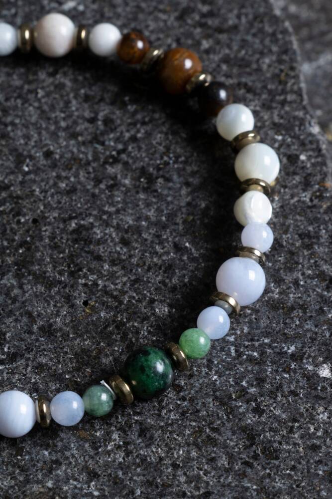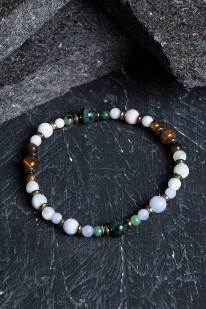 Zodyak'ın en hassas, koruyucu ve duygusal zekası yüksek burcu olan Yengeçler için özel olarak seçilen; Kalsedon, , Kaplan Gözü, Anyolit ve Ay Taşı bu eşsiz misinalı tasarımda buluştu. Bu bileklik, Yengeç burcunun naif enerjisini dengelemek, ona içsel güven ve spiritüel bir rehberlik sunmak için tasarlandı.